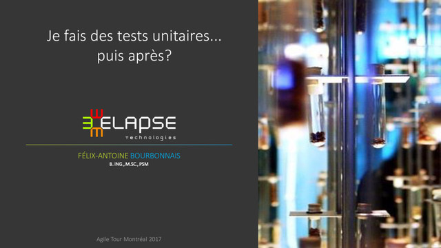 Alice écrit des tests unitaires pour… tester son code. Pour perfectionner son art, Alice entame une quête qui l'amènera à voir ses tests autrement.