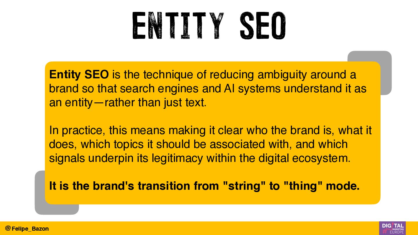 SEO is finally about SEO. But it’s not SEO anymore. In this session, presented at Digital Marketing Conference Europe, I explore how the foundations of search have fundamentally shifted in the age of AI-powered discovery.