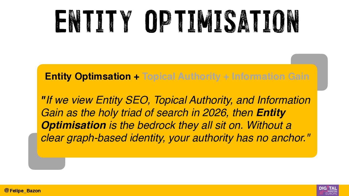 This talk is about optimizing for understanding, authority and selection — the real currency of search in 2026.
