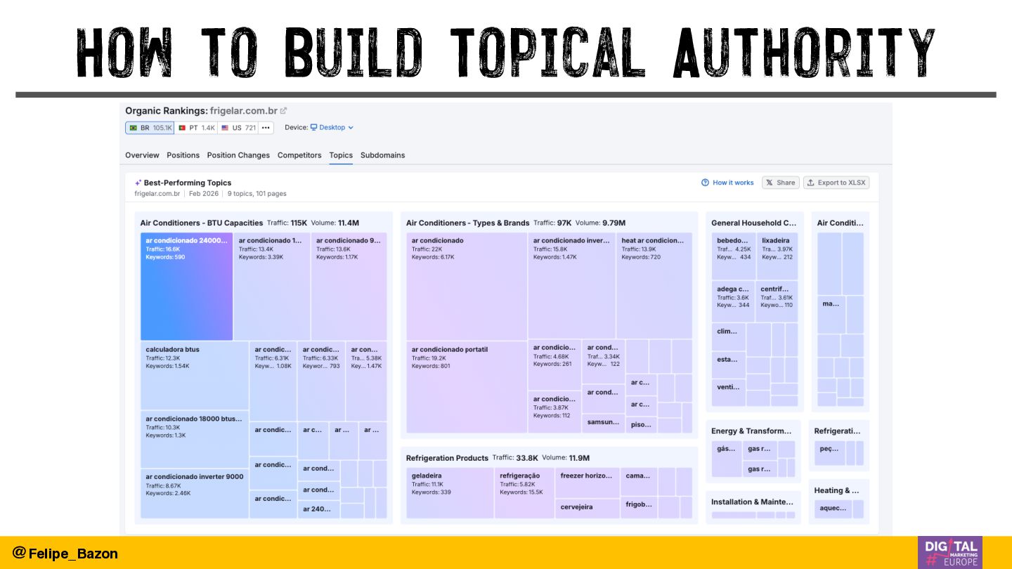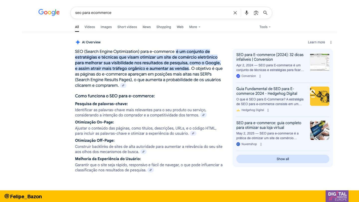 Drawing from real-world case studies across highly competitive markets — from Brazilian retail to UK-based businesses scaling internationally — this presentation breaks down the three pillars that are redefining organic visibility: