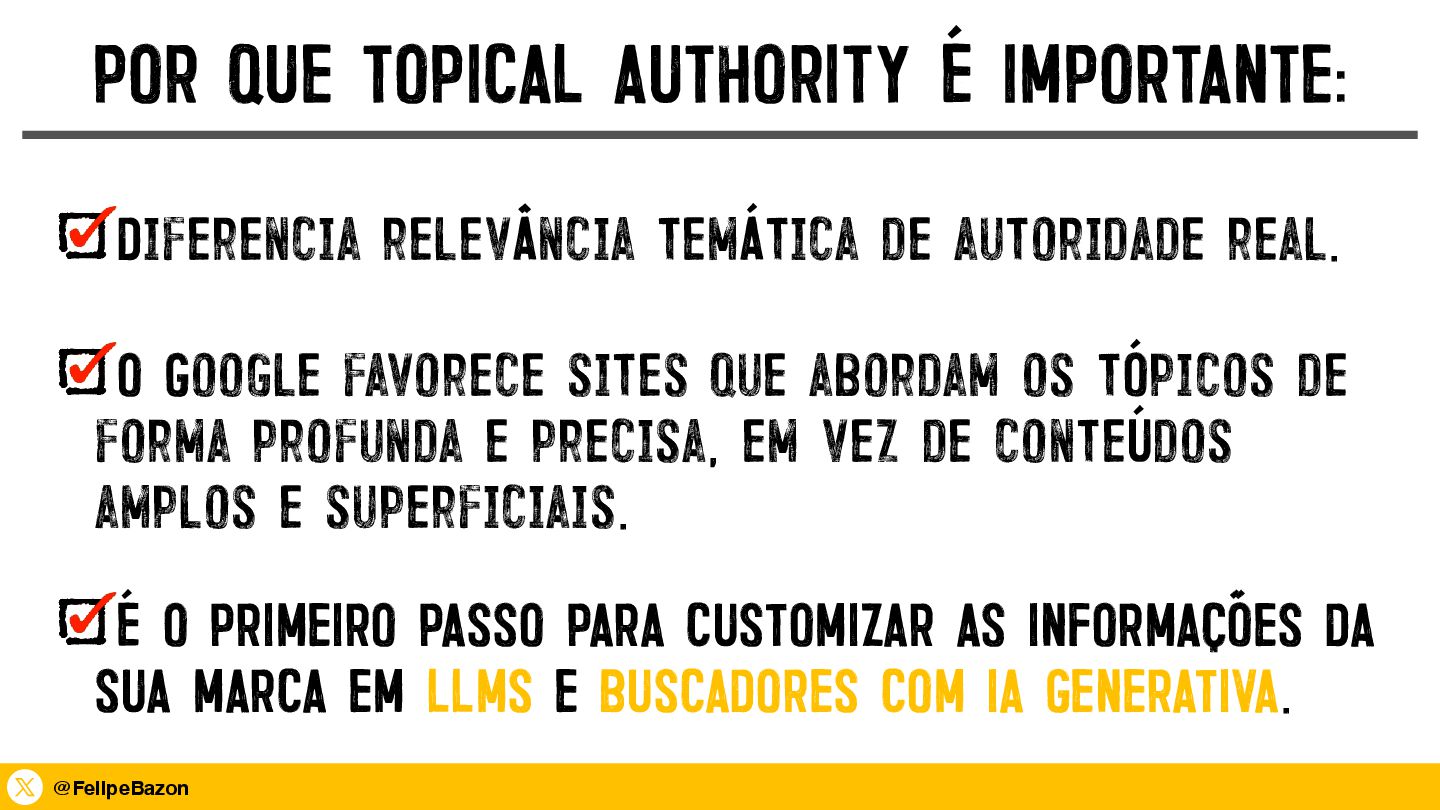 Nesta palestra, Felipe Bazon apresenta os fundamentos estratégicos do GEO (Generative Engine Optimization) — com foco em Entity Optimization, Topical Authority e Information Gain — e mostra como aplicar essas frentes para ampliar a visibilidade da sua marca em múltiplos ecossistemas de busca, tradicionais e generativos.
