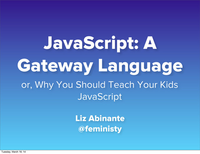 Kids JavaScript Liz Abinante @feministy Tuesday, March 18, 14