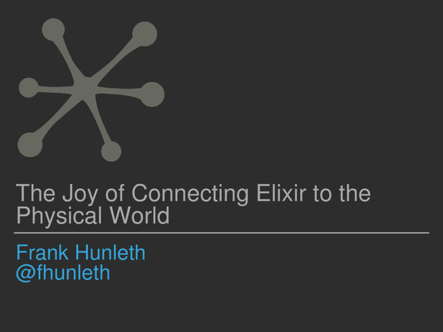 the Arduino ▸ UART protocol for controlling pins ▸ https://github.com/firmata/protocol ▸ Elixir even has a firmata library ▸ https://github.com/kfatehi/firmata ▸ Looking for a maintainer