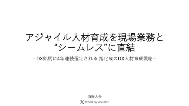 アジャイル人材育成を現場業務と “シームレス”に直結 - DX銘柄に4年連続選定される 旭化成のDX人材育成戦略 - 西野大介 @nishino_chekhov