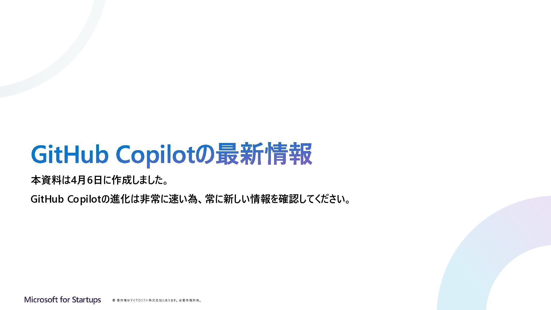 Copilotの最新情報 本資料は4月6日に作成しました。 GitHub Copilotの進化は非常に速い為、常に新しい情報を確認してください。