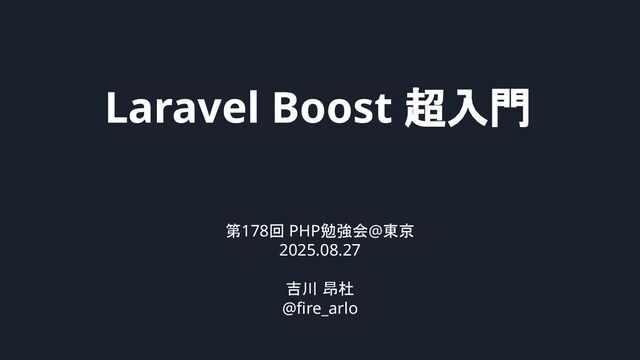 Laravel Boost 超入門 第178回 PHP勉強会@東京 2025.08.27 吉川 昂杜 @fire_arlo