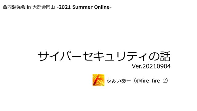サイバーセキュリティの話 Ver.20210904 ふぁいあー(@fire_fire_2) 合同勉強会 in 大都会岡山 -2021 Summer Online-