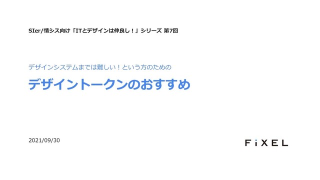 デザインシステムまでは難しい︕という⽅のための デザイントークンのおすすめ SIer/情シス向け「ITとデザインは仲良し︕」シリーズ 第7回 2021/09/30