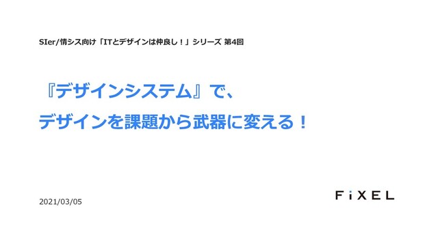 既存システムの統合・改善のプロジェクトでデザインシステム構築 l デザインの改善はもちろん、フロント実装のコスト削減・納期短縮 l 家電メーカー l 全社向けのデザインシステム構築後、事業部単位、プロダクト単位に展開中 l 法律関連サービスプロバイダー l デザインシステムで複数のサービス間のデザインの⼀貫性獲得 l フロントエンド実装の標準化とコスト低減 ⽇本における『デザインシステム』の導⼊状況(Fixelの⽀援事例を中⼼に)