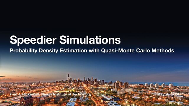 := expectation 𝔼 [f( X ⏟ ∼ 𝒰 ([0,1]d) )] = integral ∫ [0,1]d f(x) dx ≈ sample mean 1 n n ∑ i=1 f(xi ) =: ̂ μn Fill space better better than grids 0.00 0.25 0.50 0.75 1.00 xi1 0.00 0.25 0.50 0.75 1.00 xi2 0.00 0.25 0.50 0.75 1.00 xi1 0.00 0.25 0.50 0.75 1.00 xi3 0.00 0.25 0.50 0.75 1.00 xi1 0.00 0.25 0.50 0.75 1.00 xi4 64 Independent and identically distributed (IID) points, (d = 6)