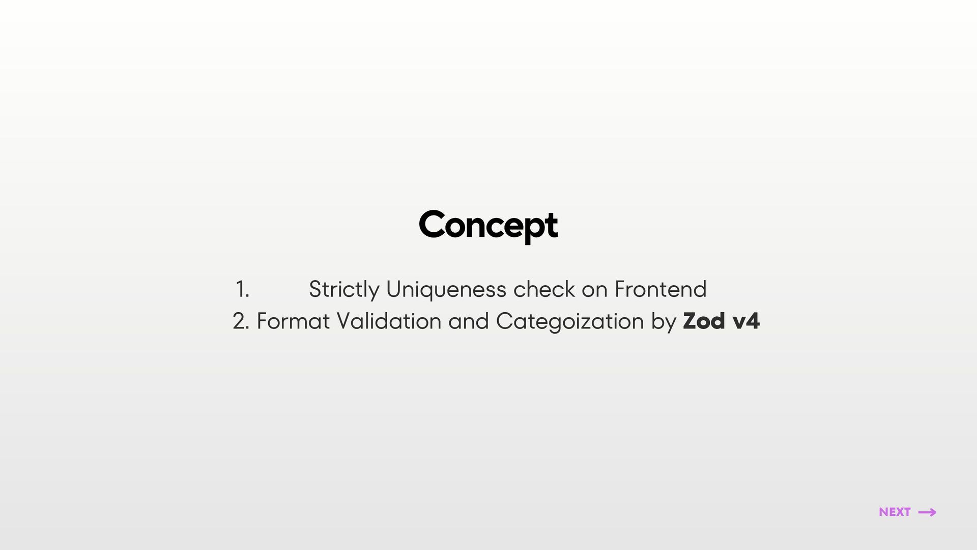 Data Zod v4 Format Check & Categorized Uniqueness Check Frontend Validation Flow