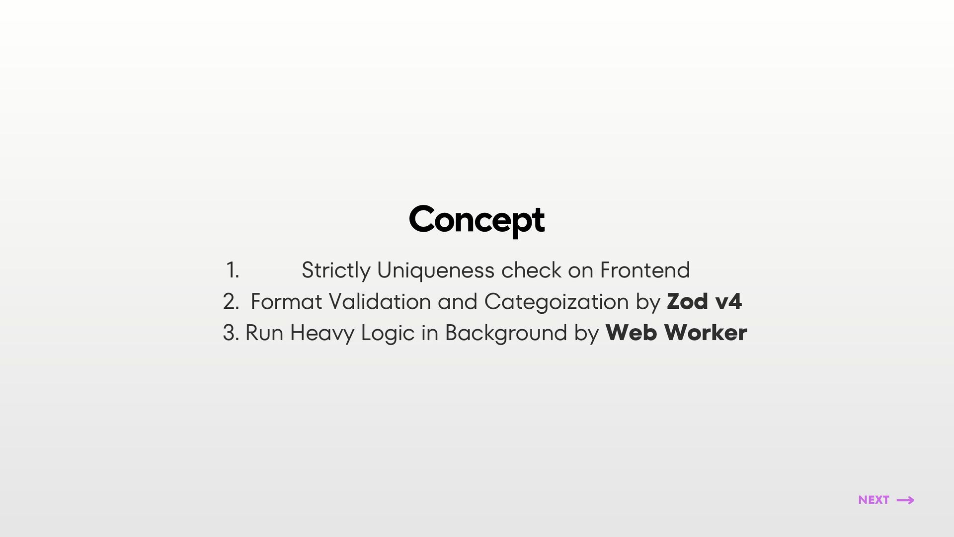 Categoization by Zod v4 3. Run Heavy Logic in Background by Web Worker Concept NEXT