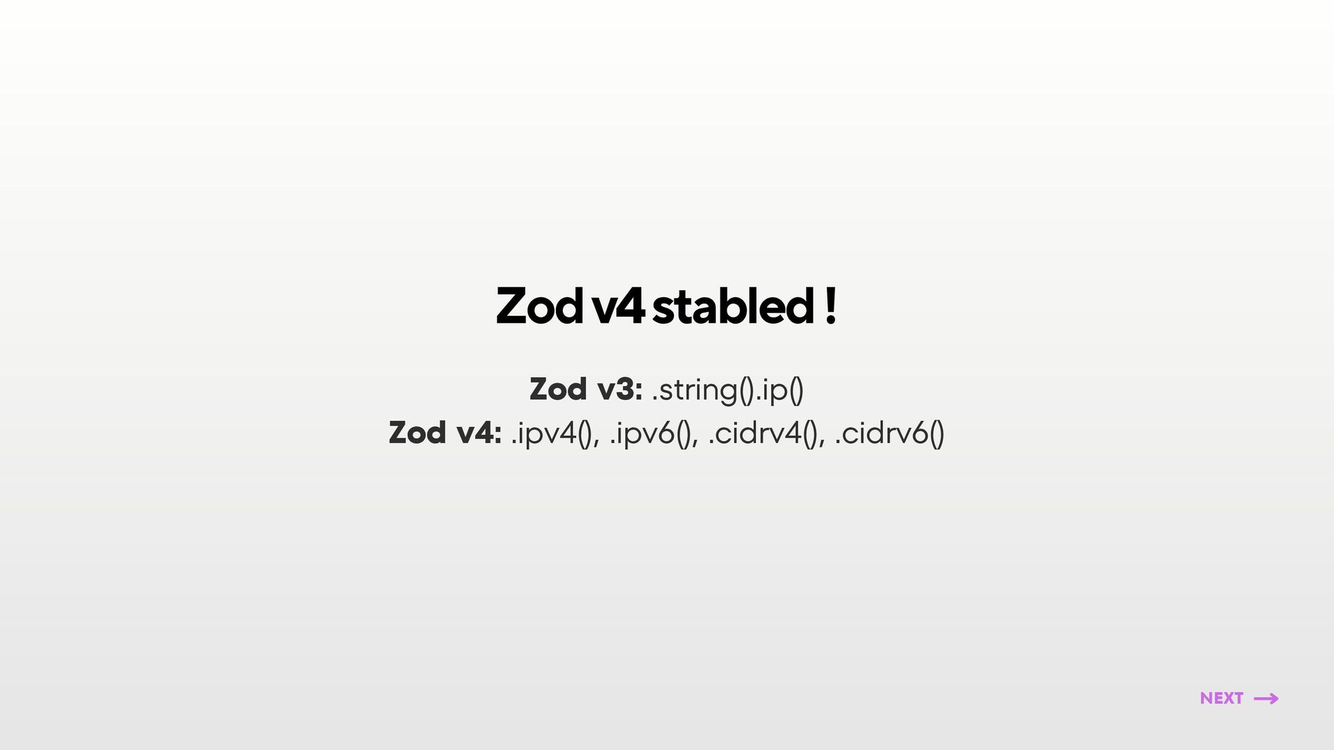 1. Maintain IPv4, v6, CIDRv4, v6 Easier by Zod v4