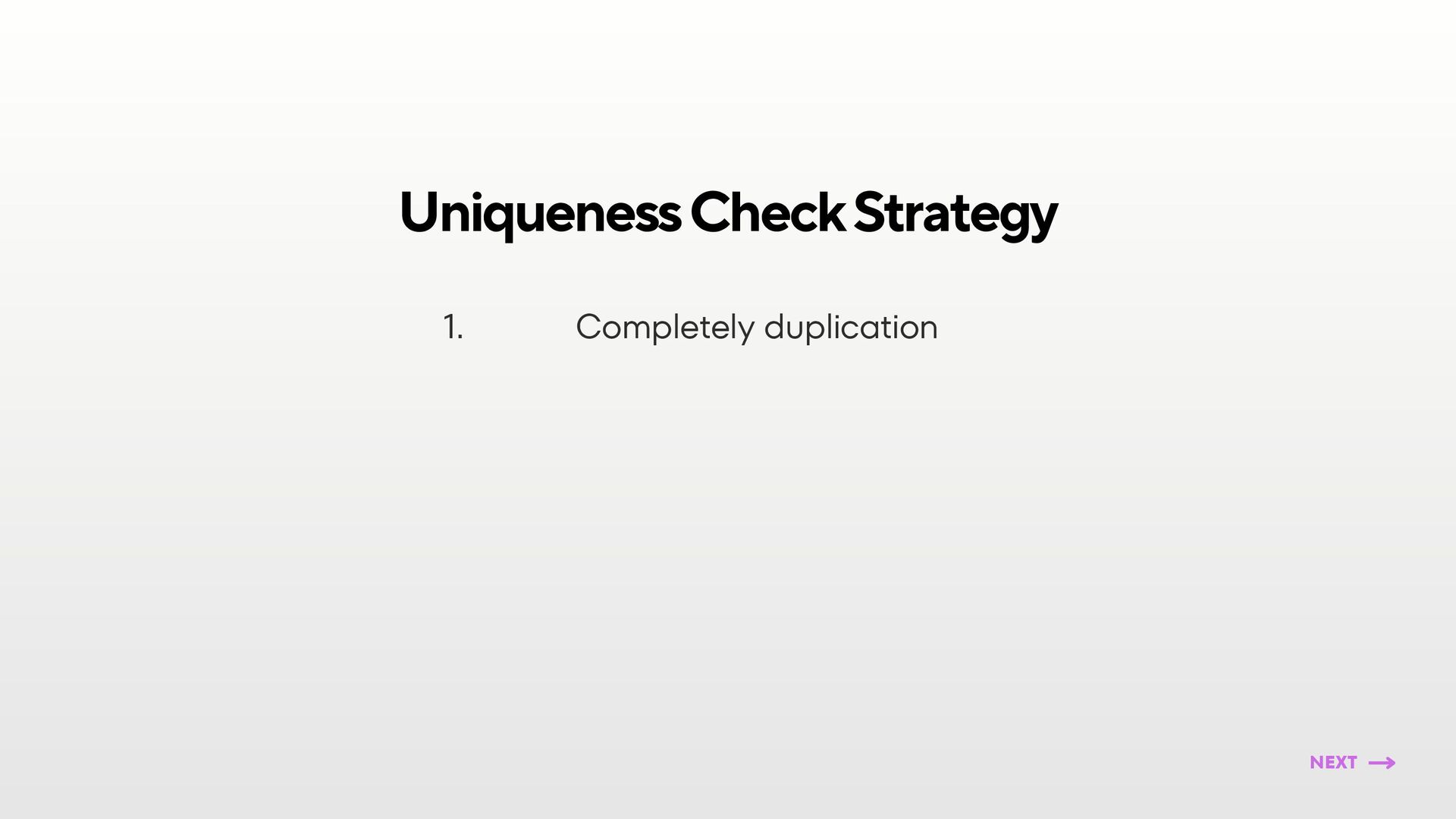 1. Completely duplication Uniqueness Check Strategy NEXT