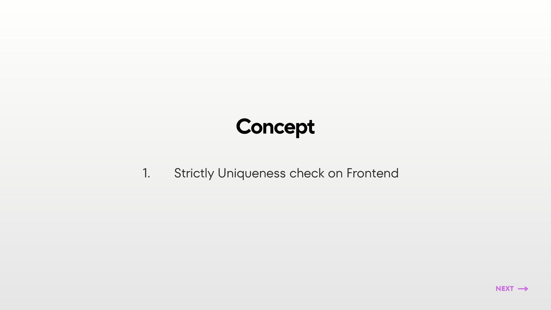 1. Strictly Uniqueness check on Frontend Concept NEXT
