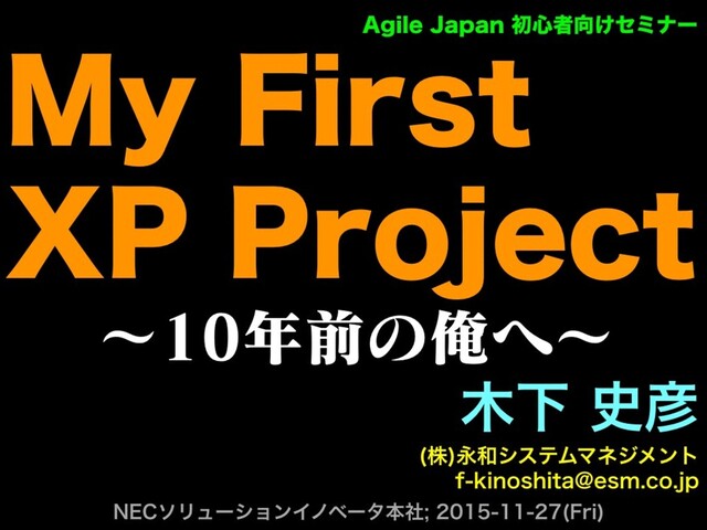 ʙલͷԶʙ Լ࢙ ג ӬγεςϜϚωδϝϯτ GLJOPTIJUB!FTNDPKQ /&$ιϦϡʔγϣϯΠϊϕʔλຊࣾ 'SJ "HJMF+BQBOॳ৺ऀ͚ηϛφʔ .Z'JSTU 911SPKFDU