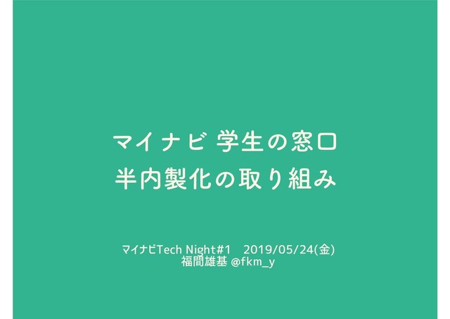 ϚΠφϏֶੜͷ૭ޱ ԽͷऔΓΈ マイナビTech Night#1 2019/05/24(金) 福間雄基 @fkm_y