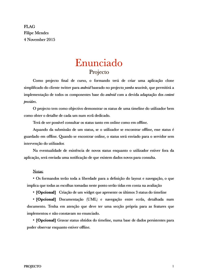 Enunciado do projecto final do módulo de Desenvolvimento de Aplicações Android