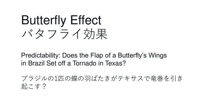 Set off a Tornado in Texas? ブラジルの1匹の蝶の羽ばたきがテキサスで竜巻を引き 起こす? Butterfly Effect バタフライ効果
