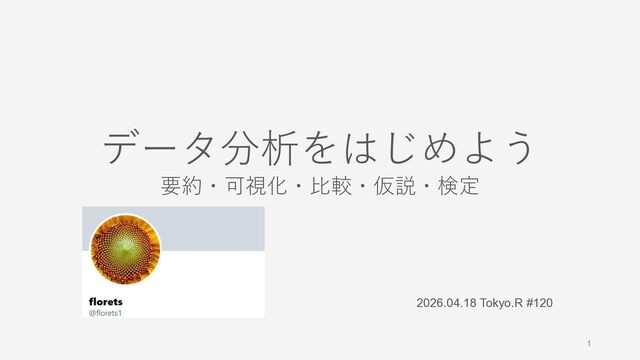 1 2026.04.18 Tokyo.R #120 データ分析をはじめよう 要約・可視化・比較・仮説・検定