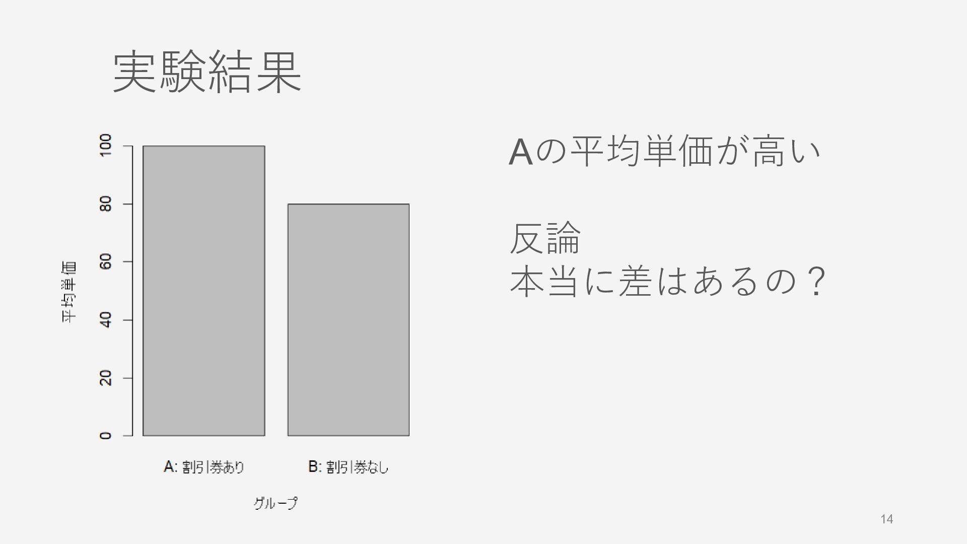 14 実験結果 Aの平均単価が高い 反論 本当に差はあるの?
