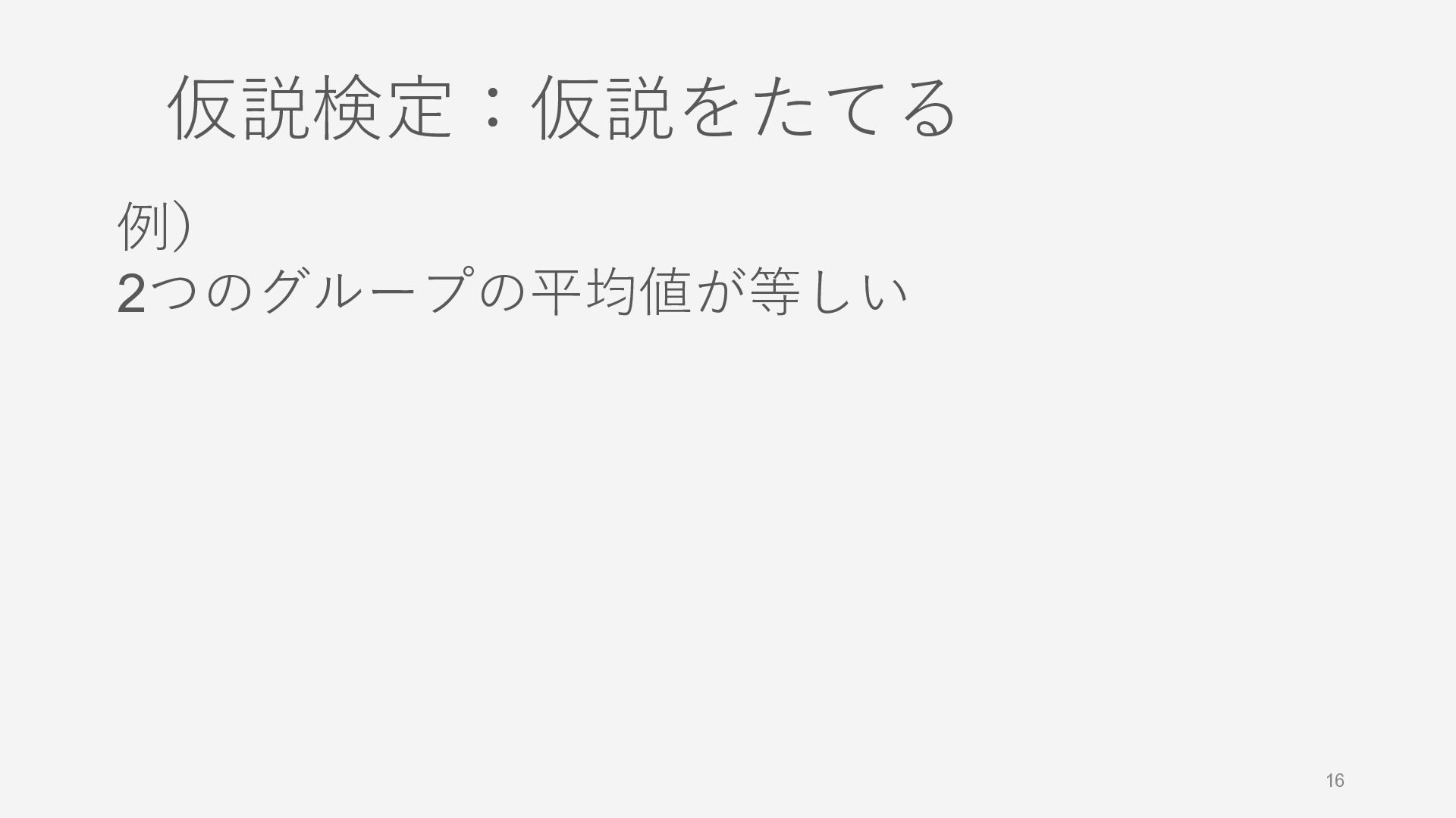 16 仮説検定:仮説をたてる 例) 2つのグループの平均値が等しい