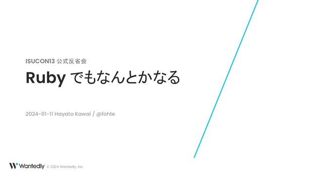 © 2024 Wantedly, Inc. Ruby でもなんとかなる ISUCON13 公式反省会 2024-01-11 Hayato