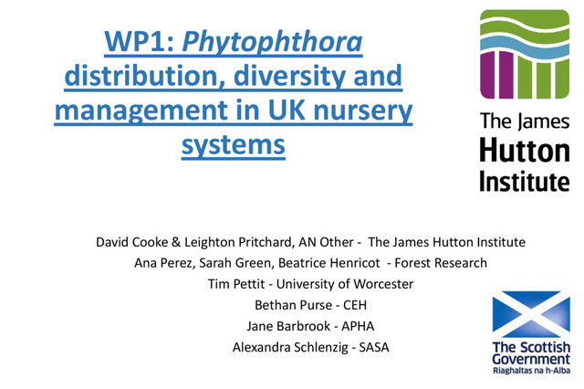 David Cooke & Leighton Pritchard, AN Other - The James Hutton Institute Ana Perez, Sarah Green, Beatrice Henricot - Forest Research Tim Pettit - University of Worcester Bethan Purse - CEH Jane Barbrook - APHA Alexandra Schlenzig - SASA