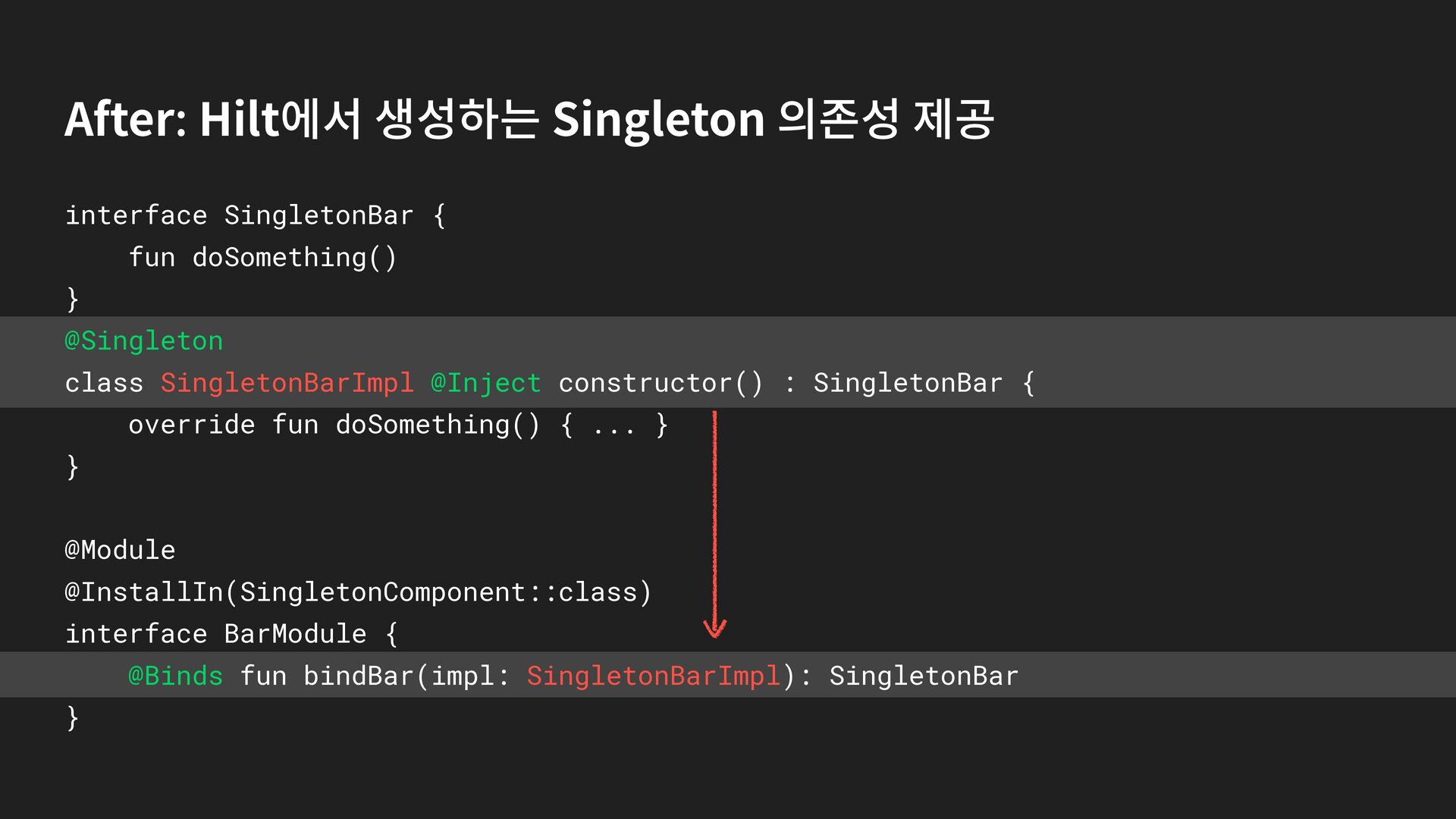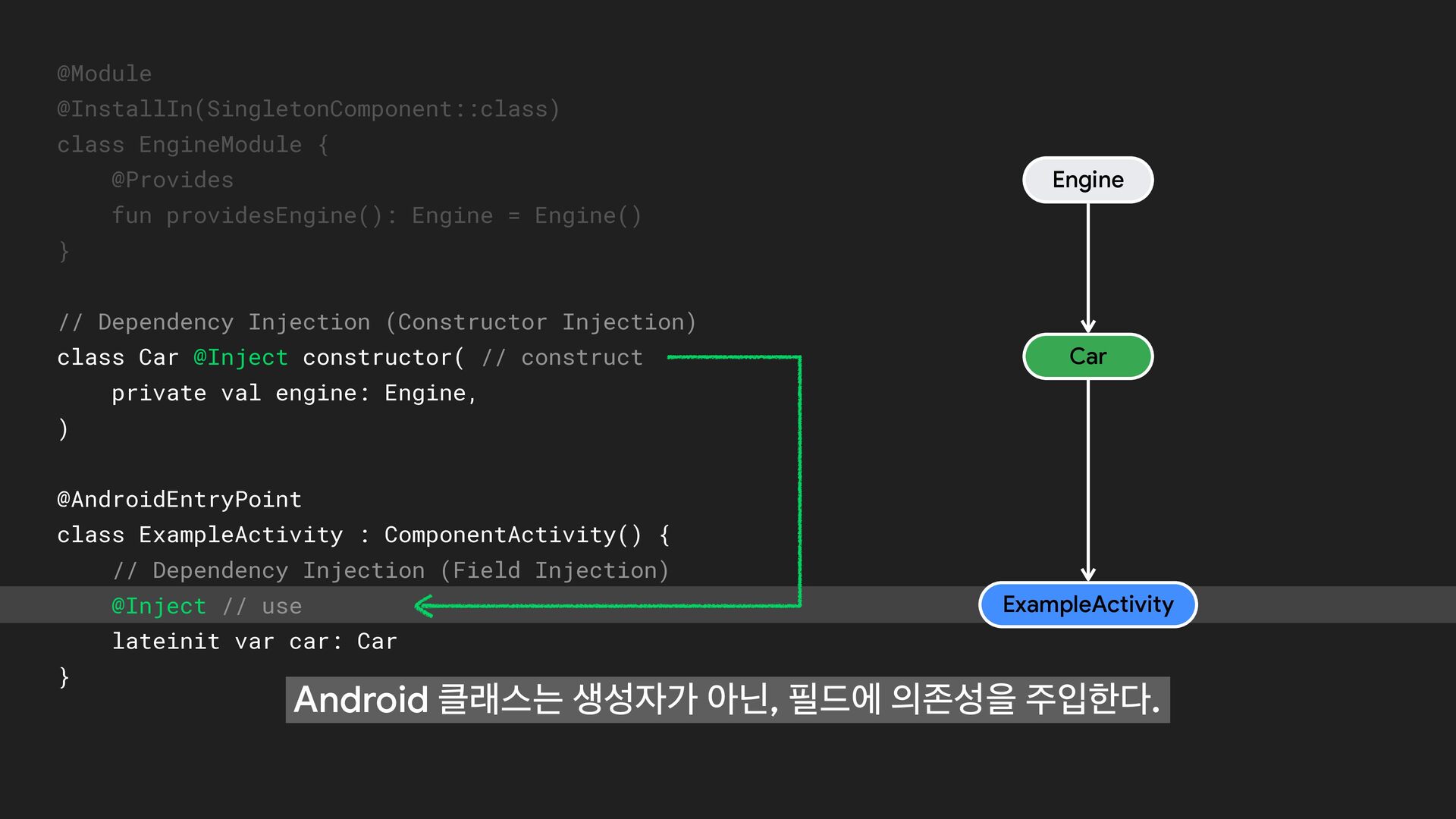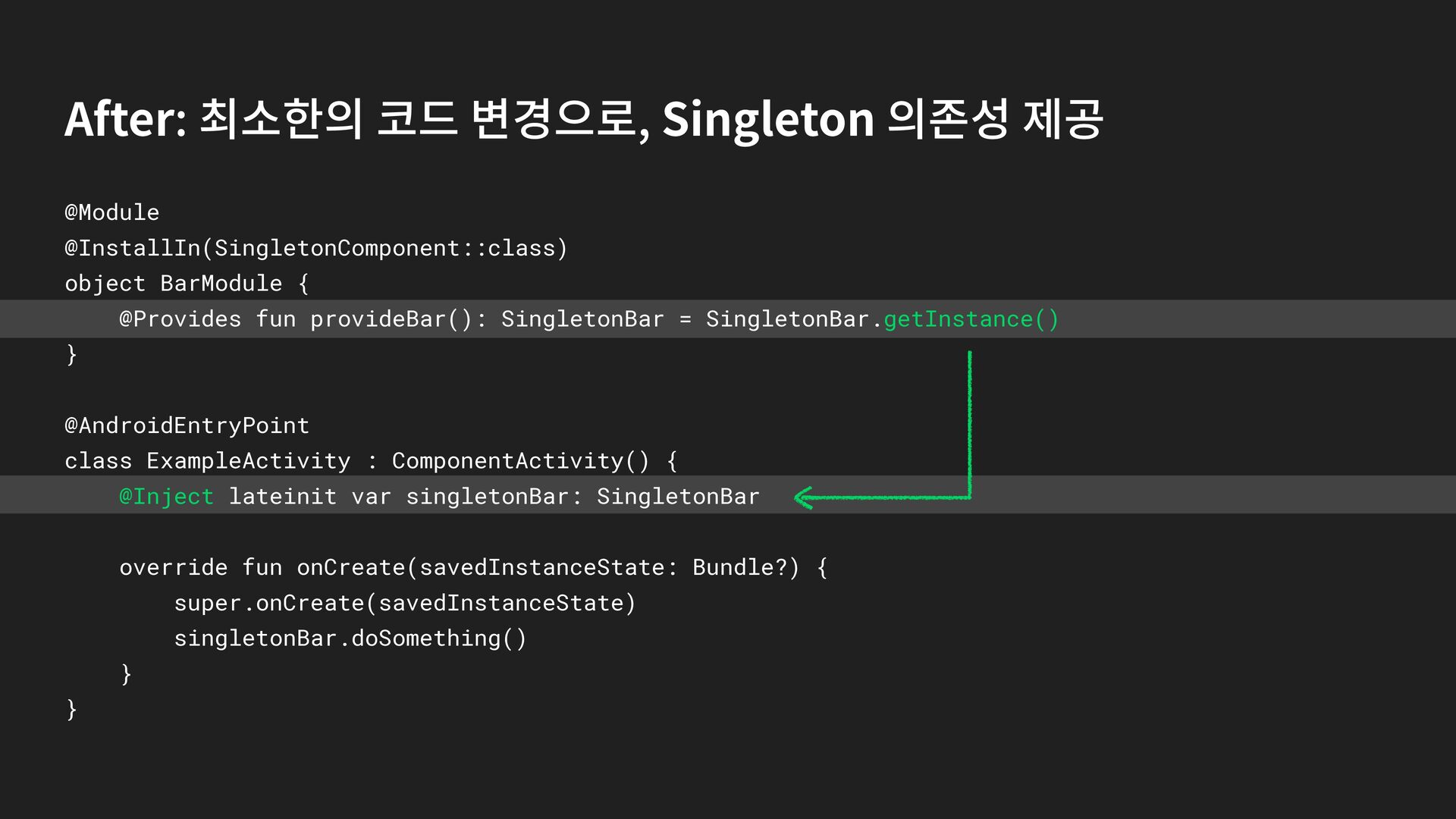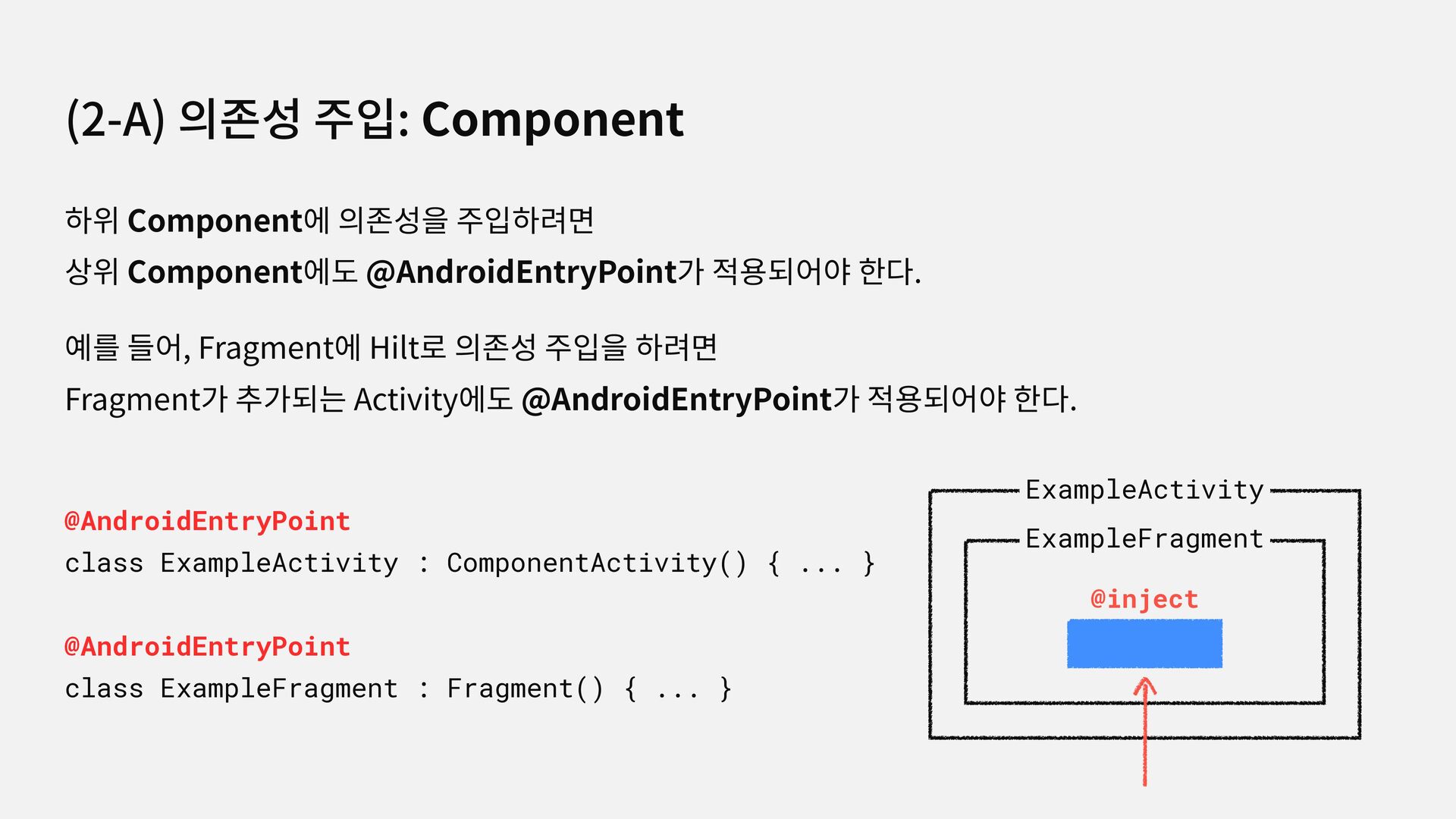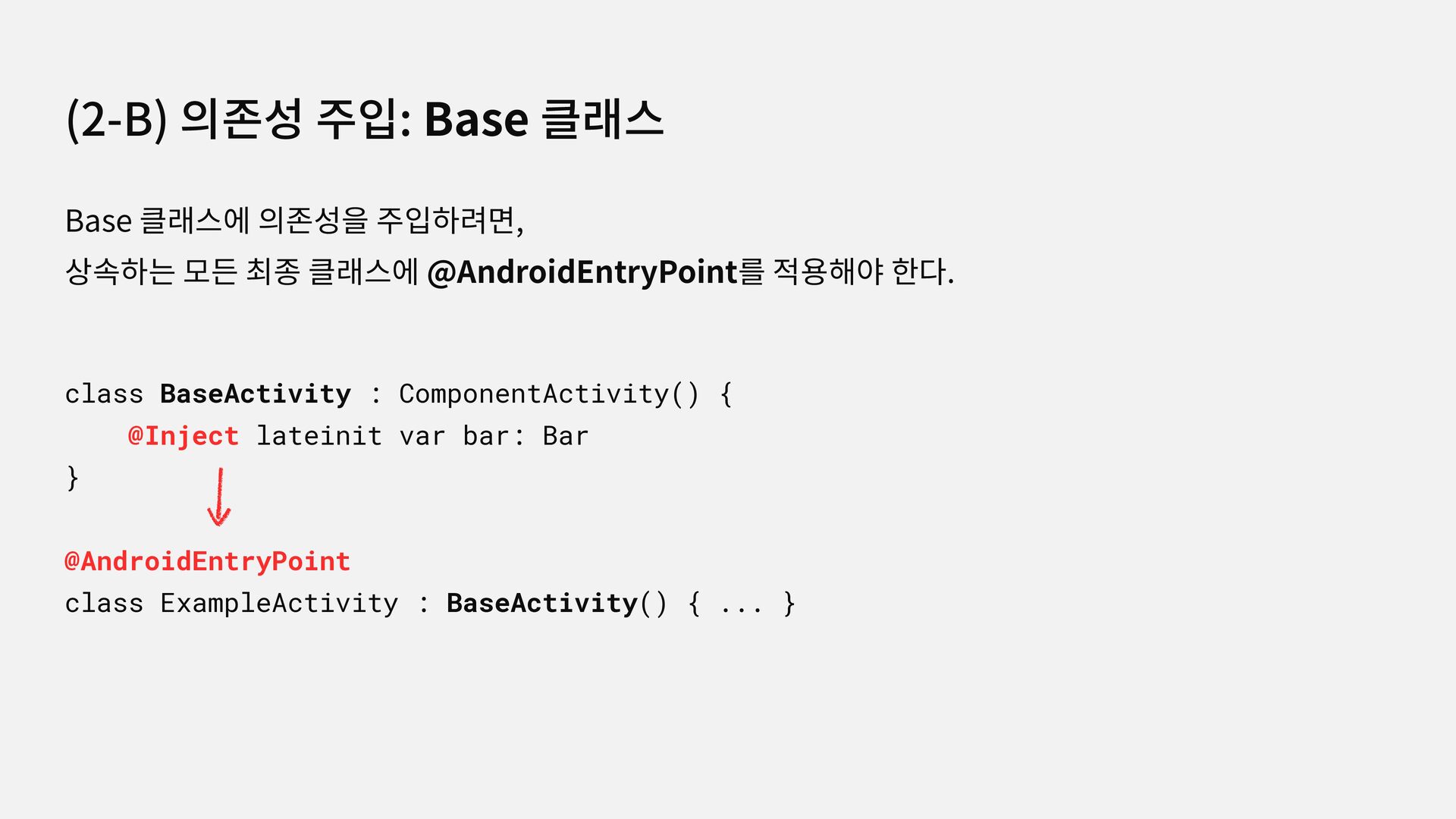 Bar } = @HiltAndroidApp class ExampleApplication : Hilt_ExampleApplication() { @Inject lateinit var bar: Bar } ߄٘ܳ ߸ജೞৈ, ࠗݽ ېझܳ ߸҃ೠ. (Gradle Plugin)