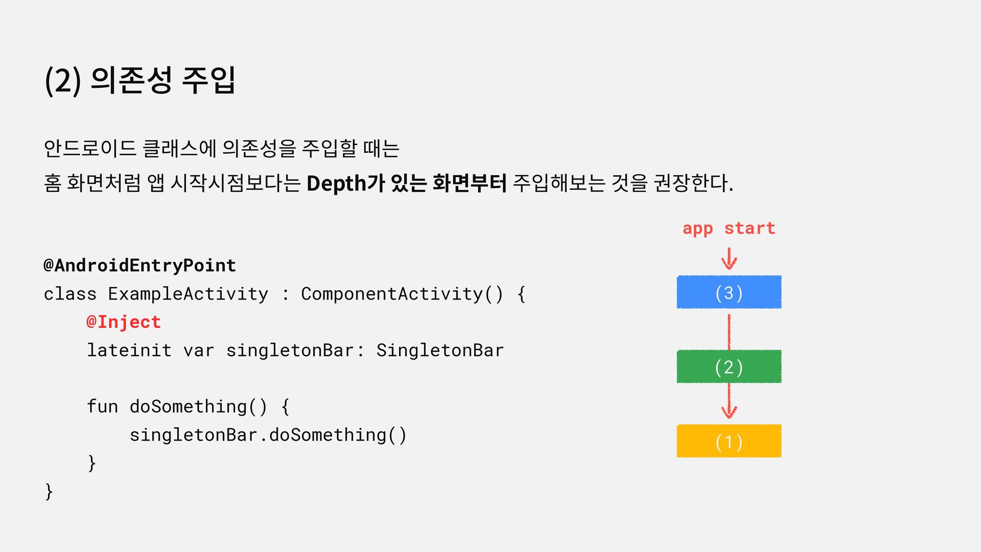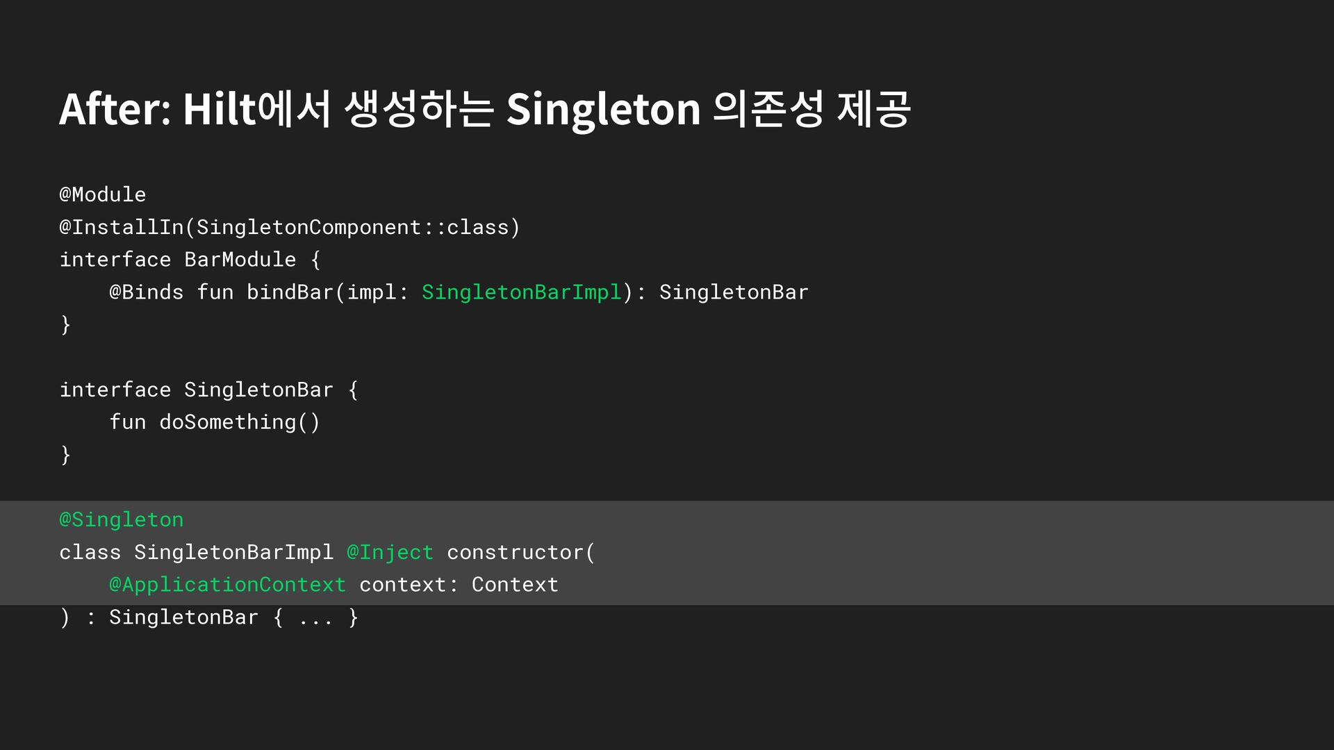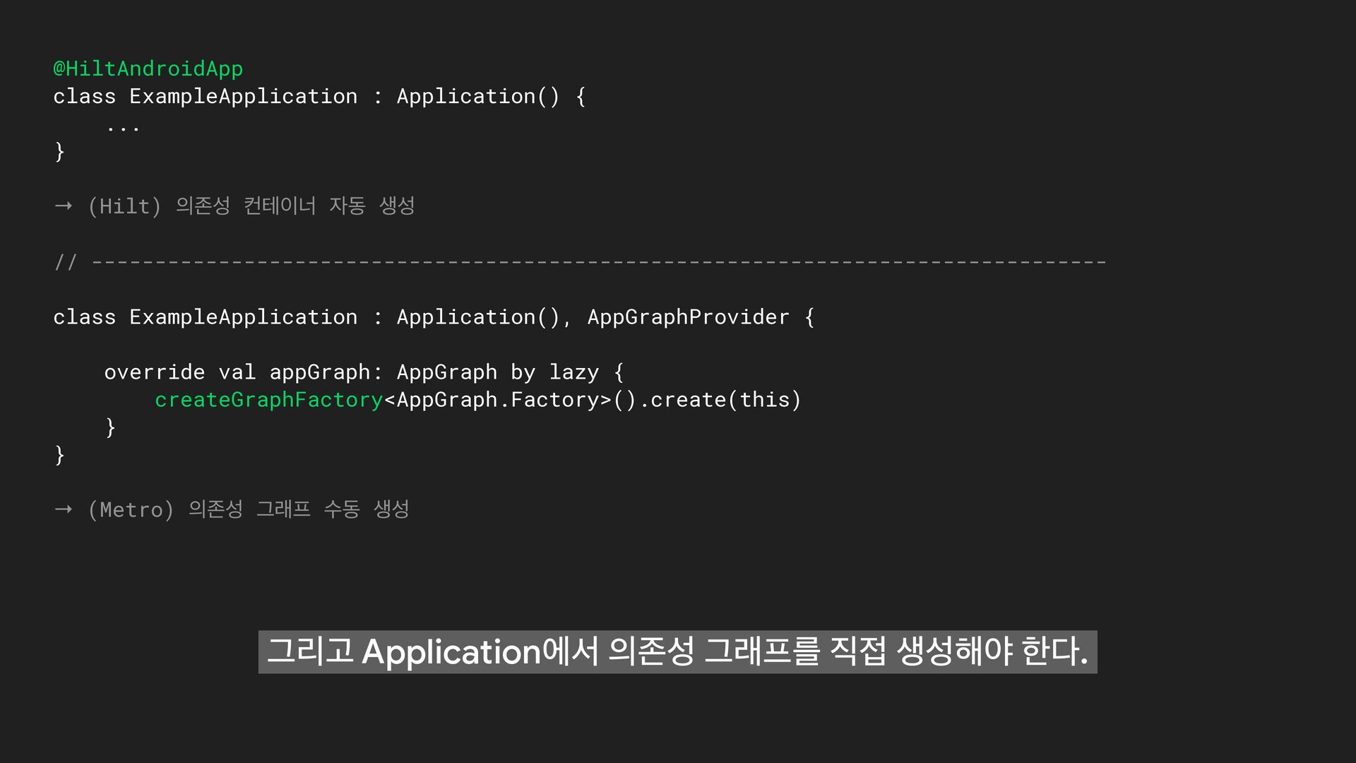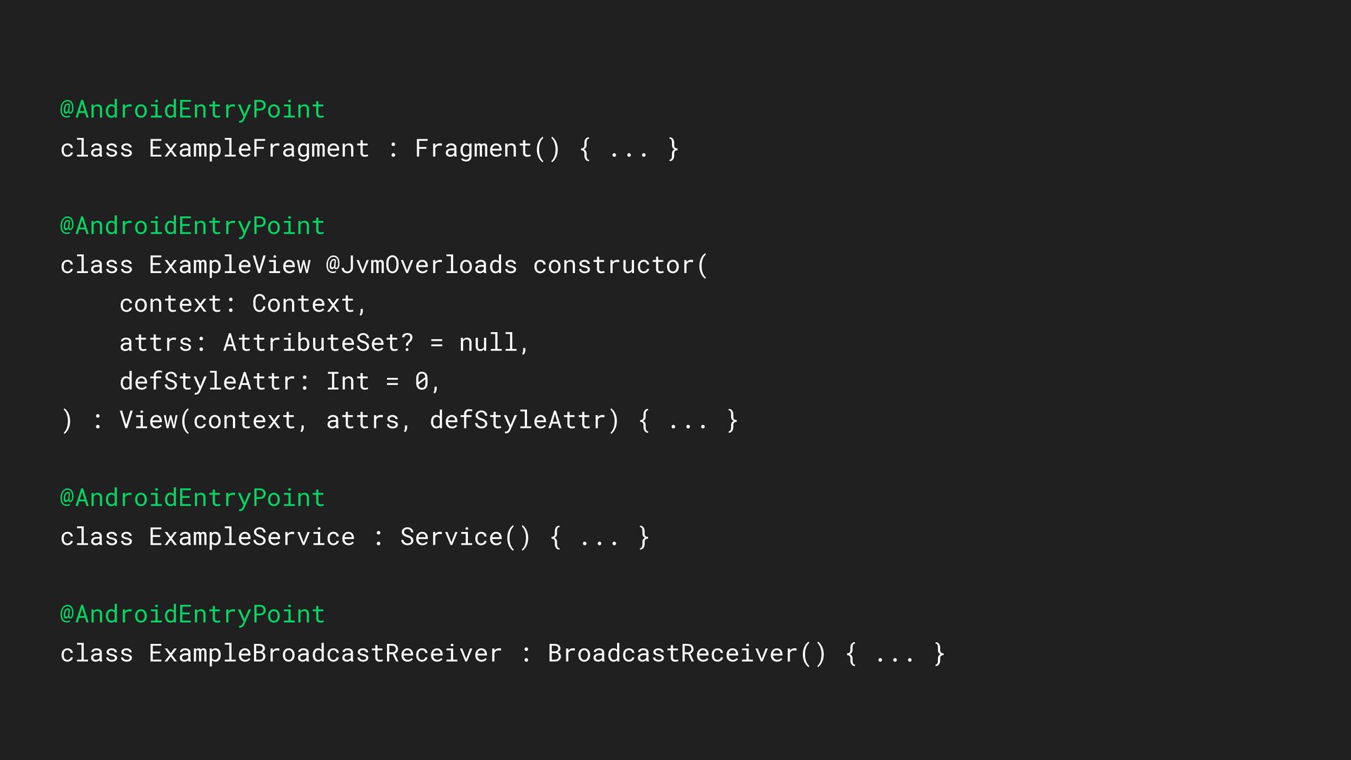 Bar } = @HiltAndroidApp class ExampleApplication : Hilt_ExampleApplication() { @Inject lateinit var bar: Bar } ߄٘ܳ ߸ജೞৈ, ࠗݽ ېझܳ ߸҃ೠ. (Gradle Plugin)