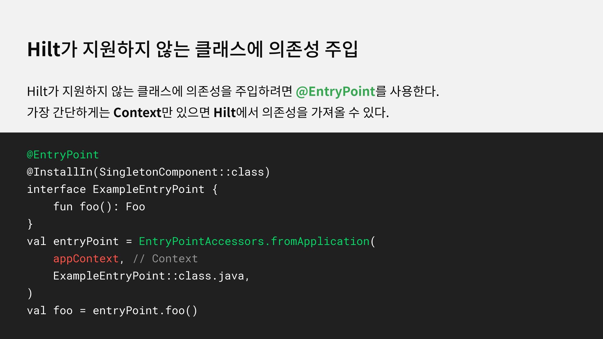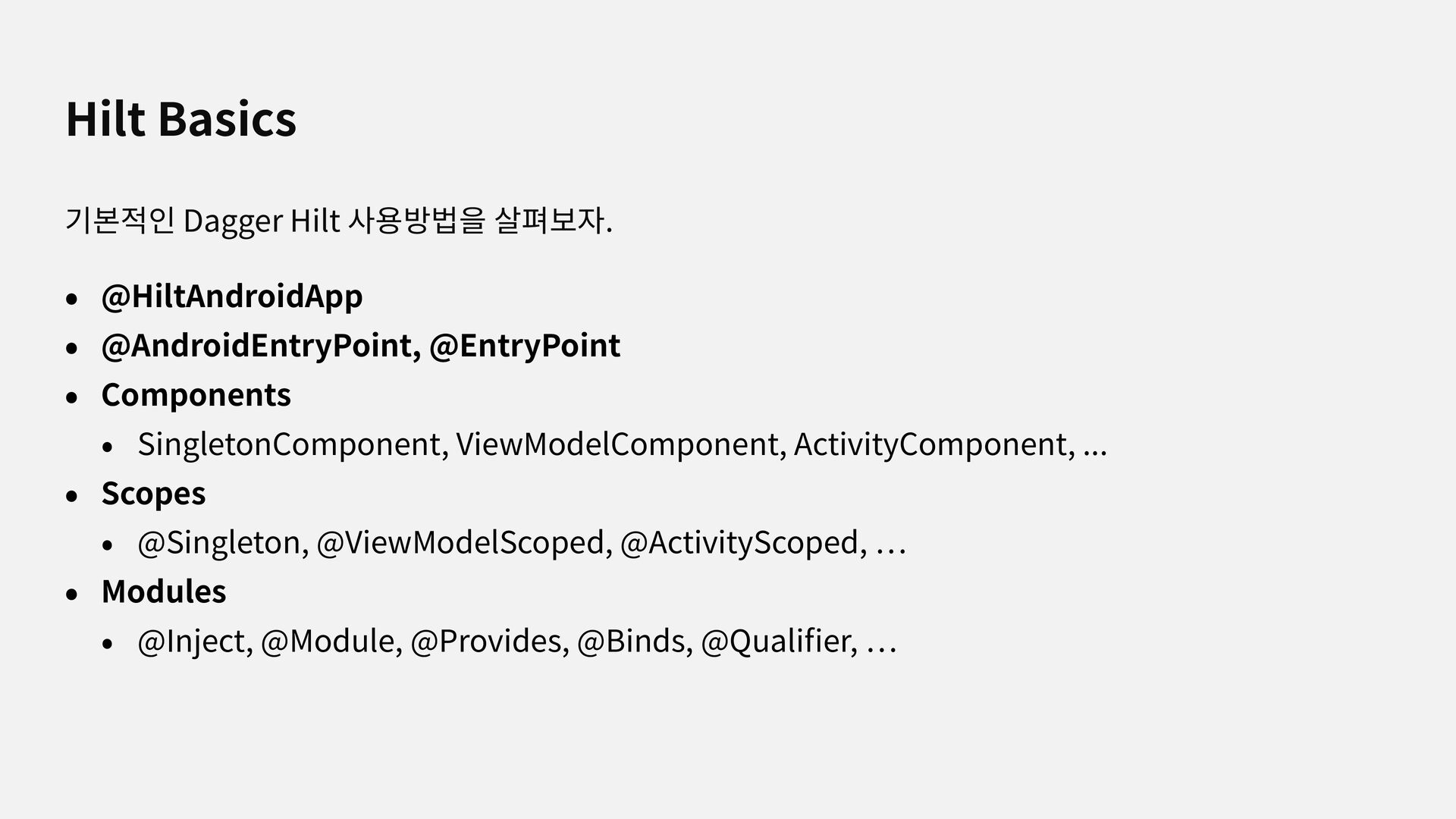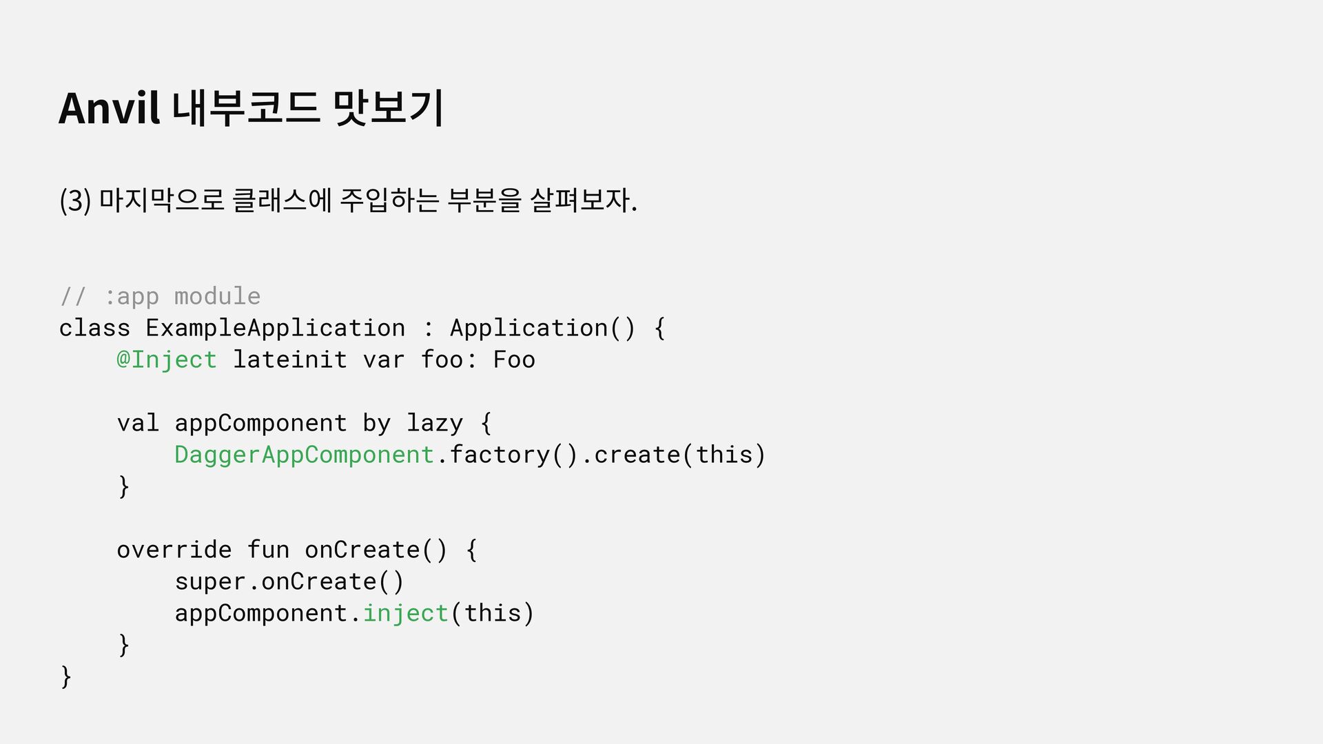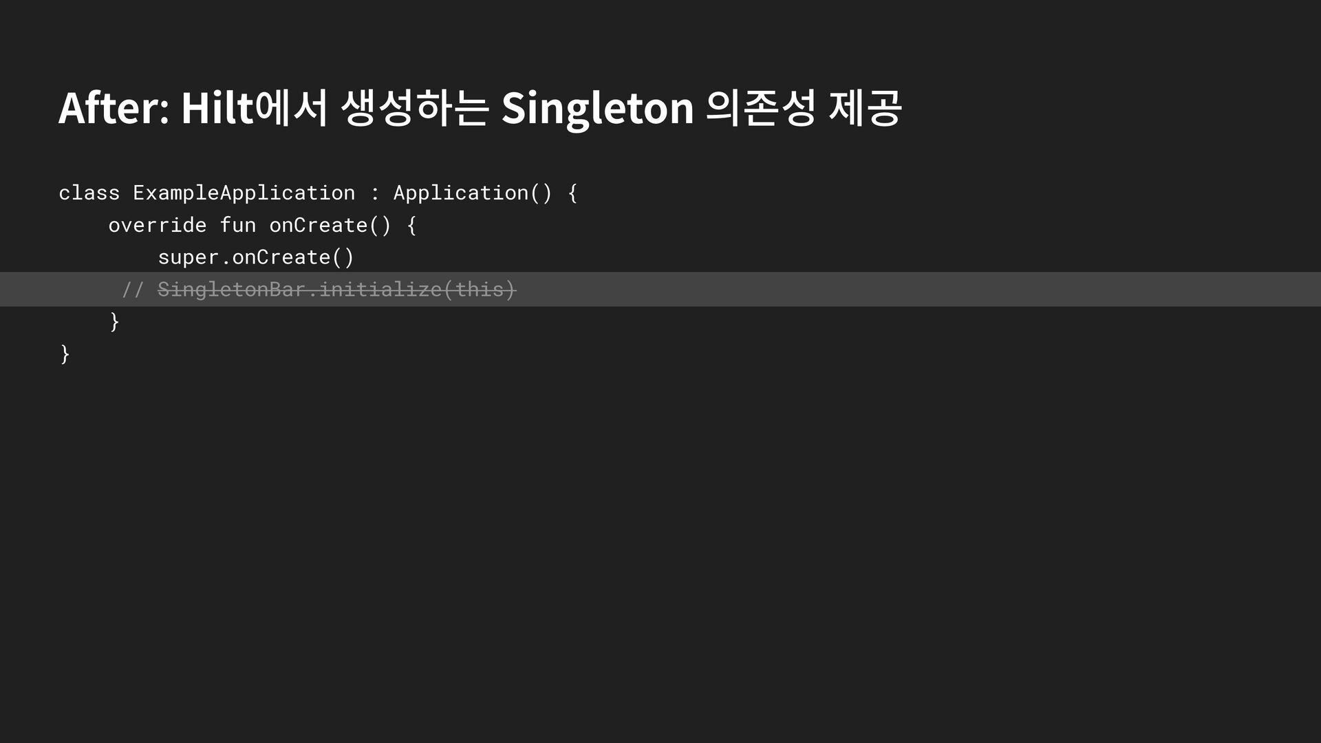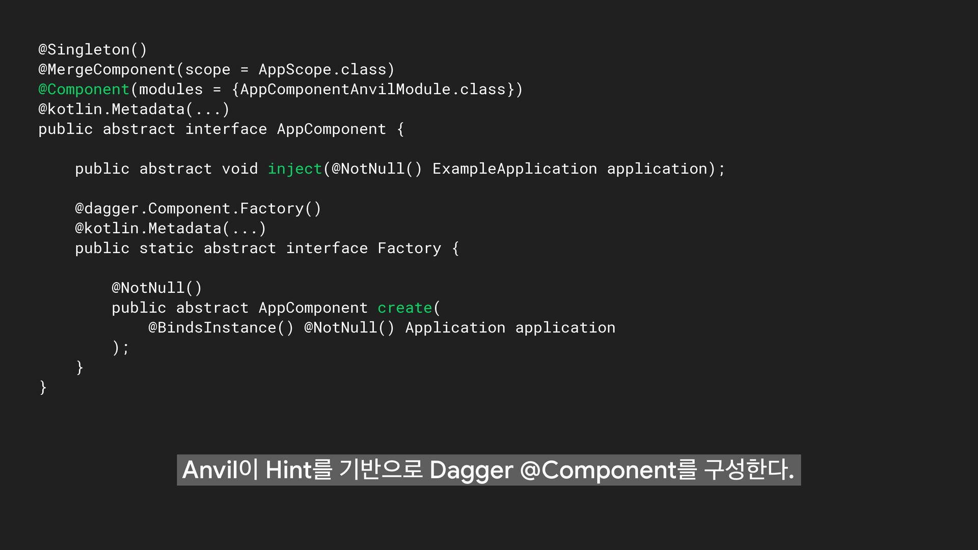 Bar } = @HiltAndroidApp class ExampleApplication : Hilt_ExampleApplication() { @Inject lateinit var bar: Bar } ߄٘ܳ ߸ജೞৈ, ࠗݽ ېझܳ ߸҃ೠ. (Gradle Plugin)