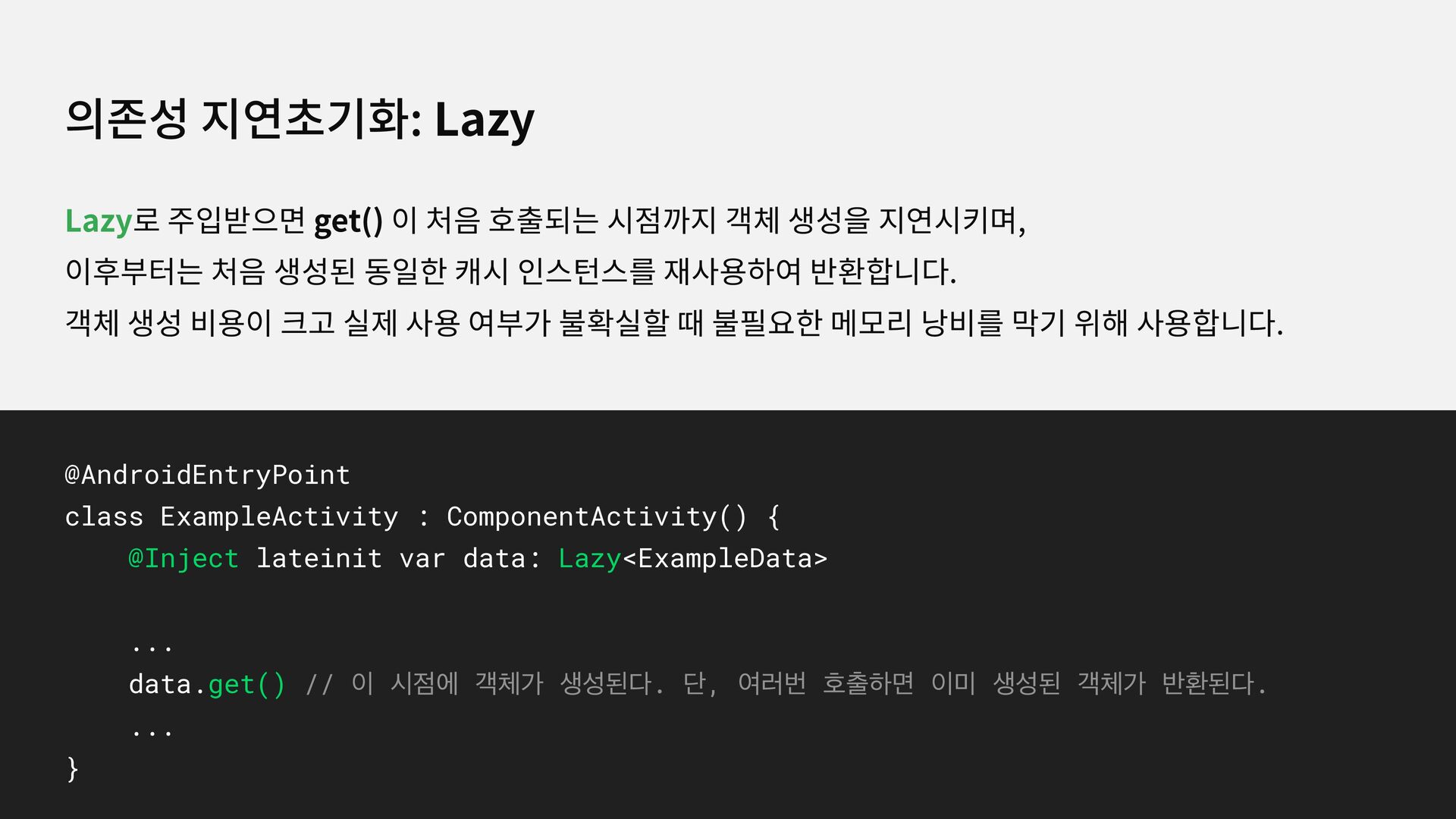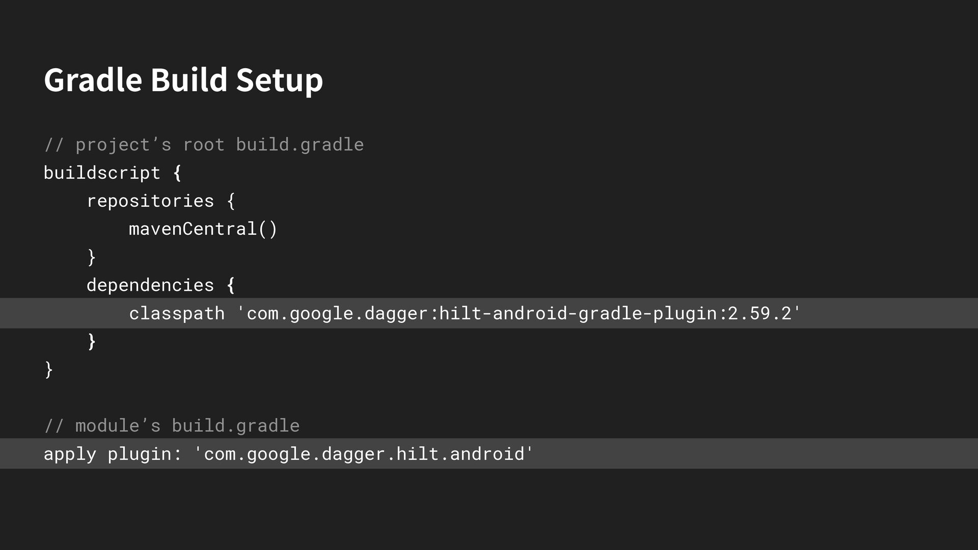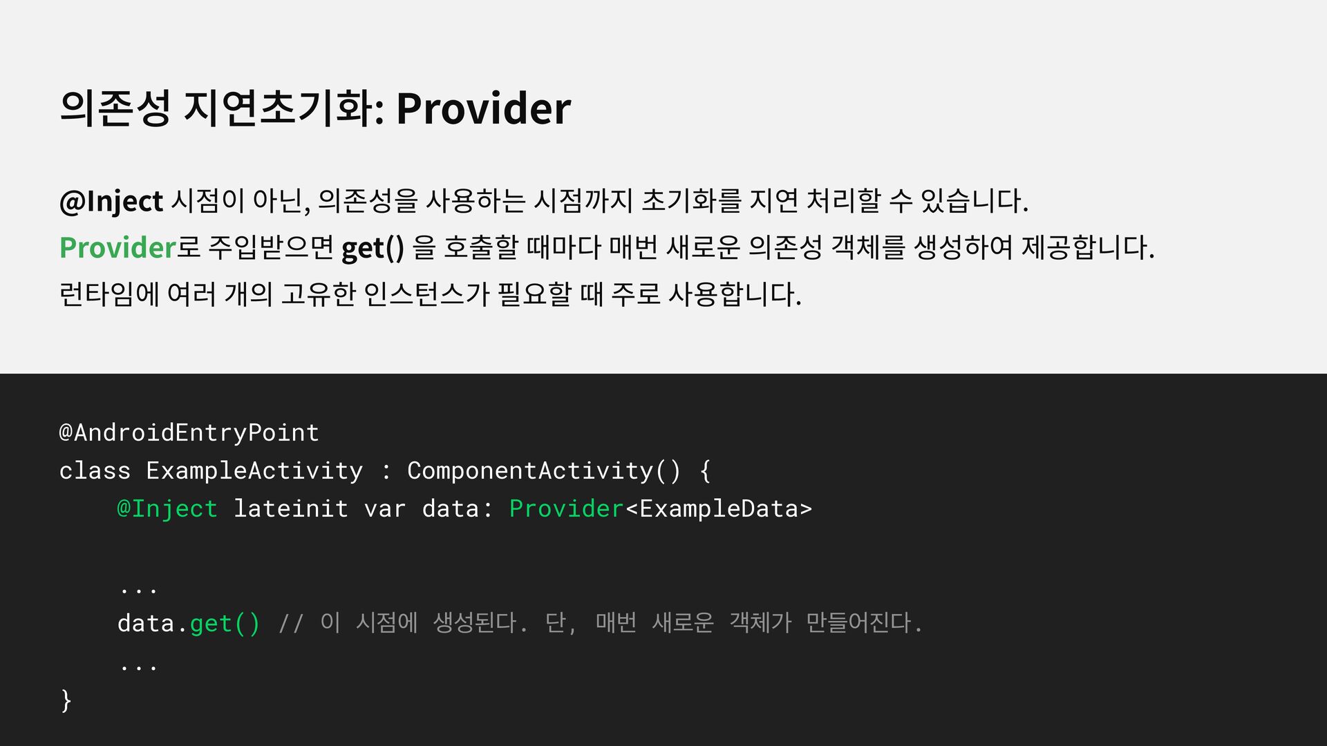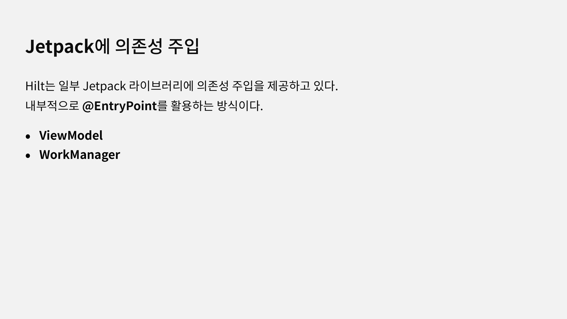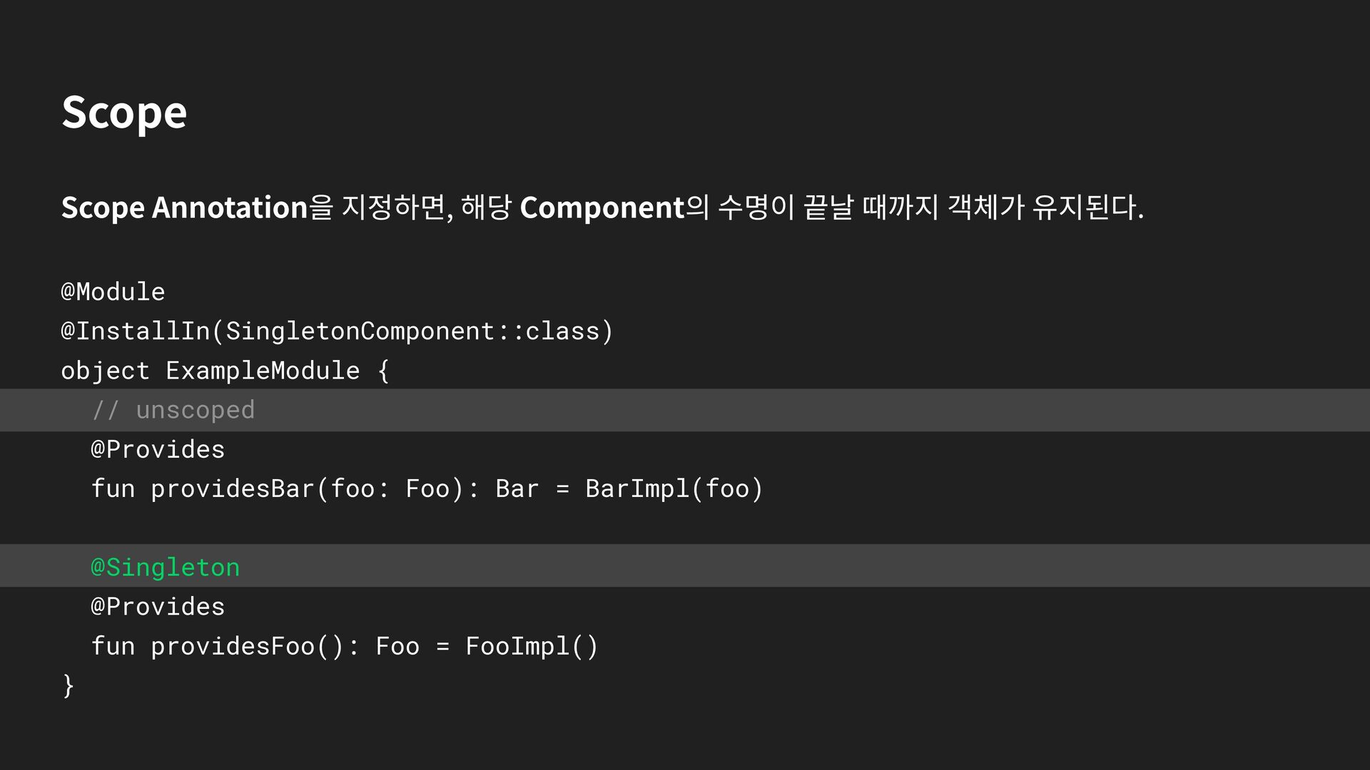 Bar } = @HiltAndroidApp class ExampleApplication : Hilt_ExampleApplication() { @Inject lateinit var bar: Bar } ߄٘ܳ ߸ജೞৈ, ࠗݽ ېझܳ ߸҃ೠ. (Gradle Plugin)