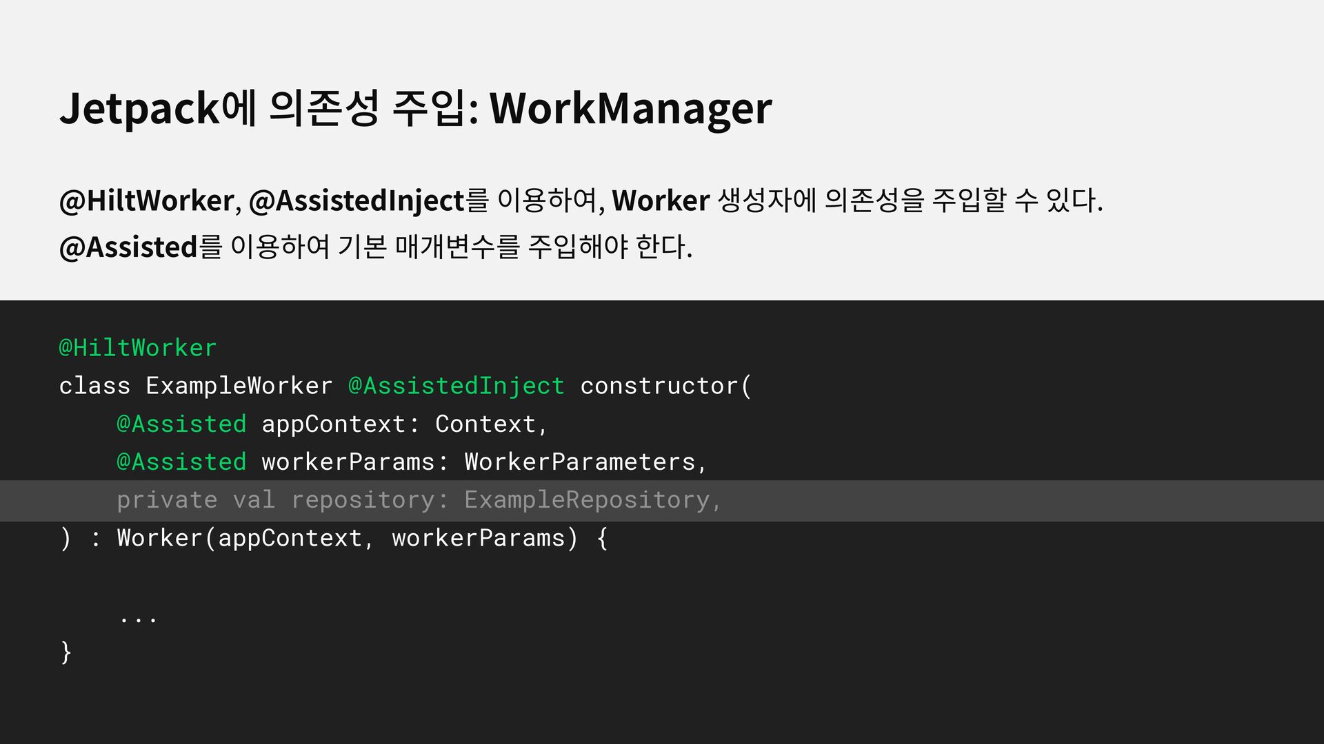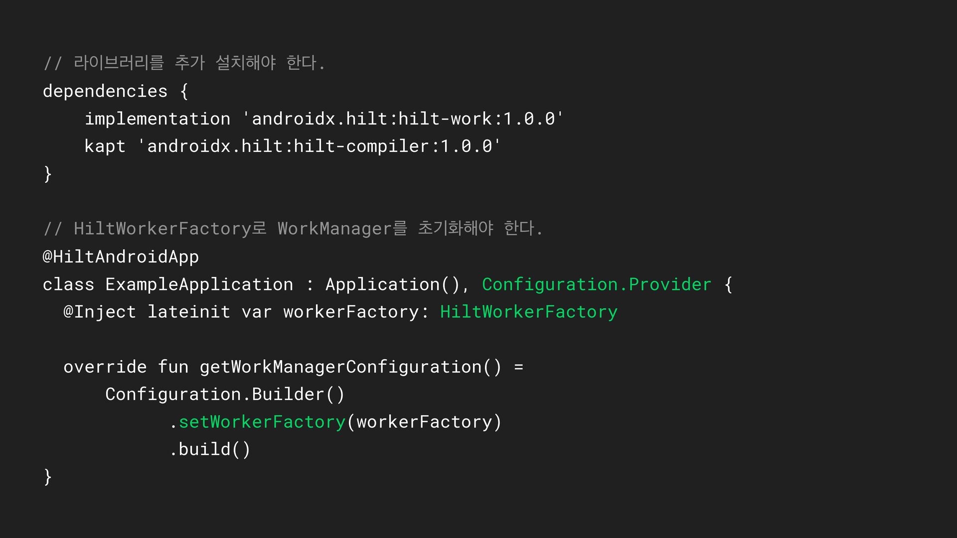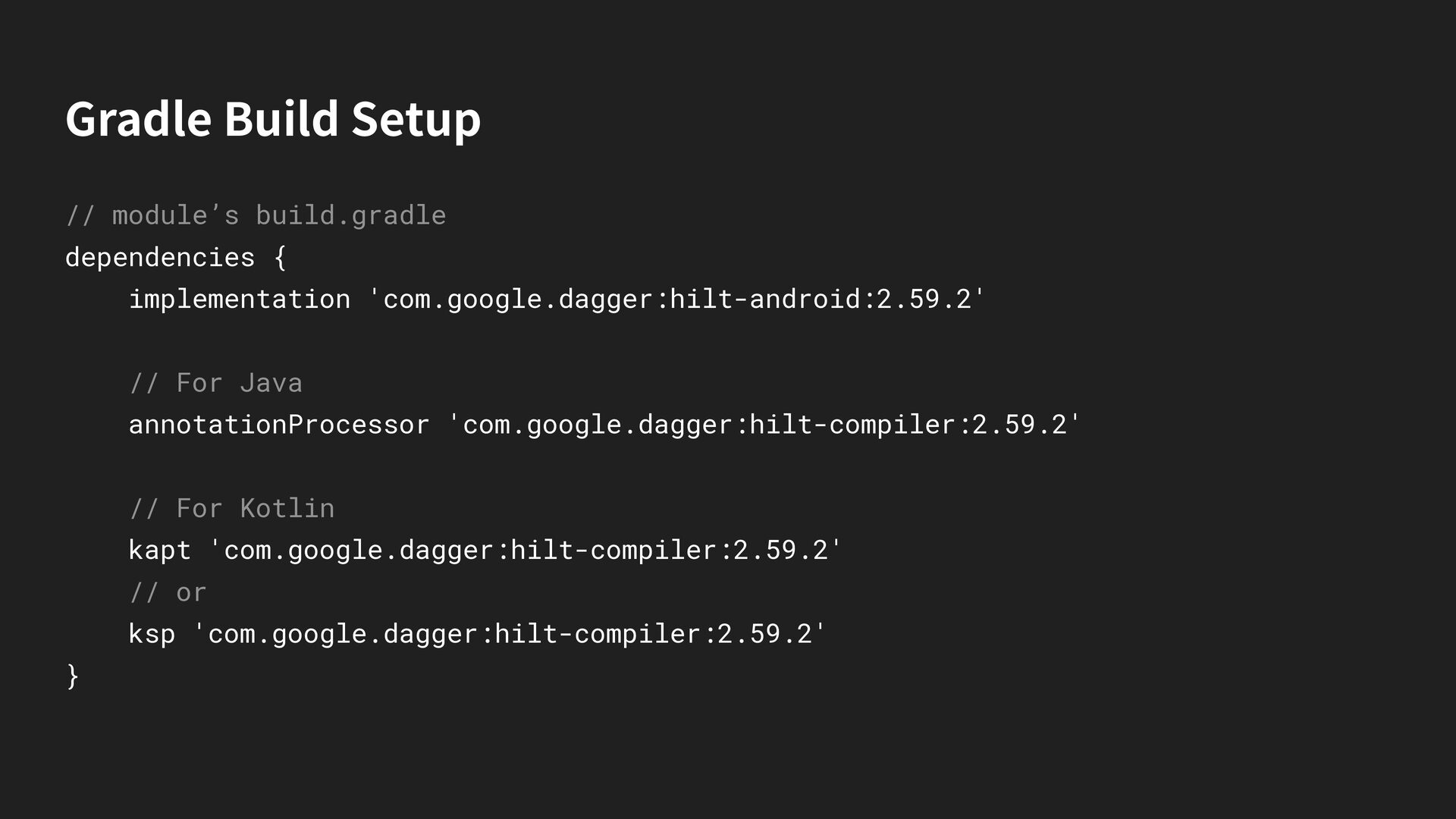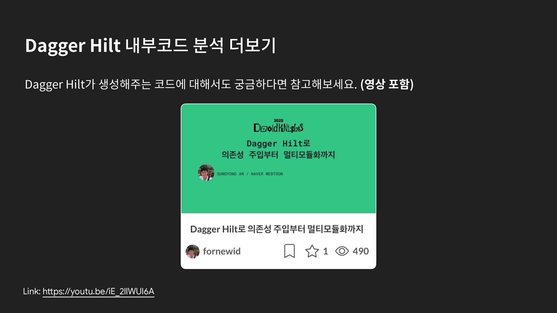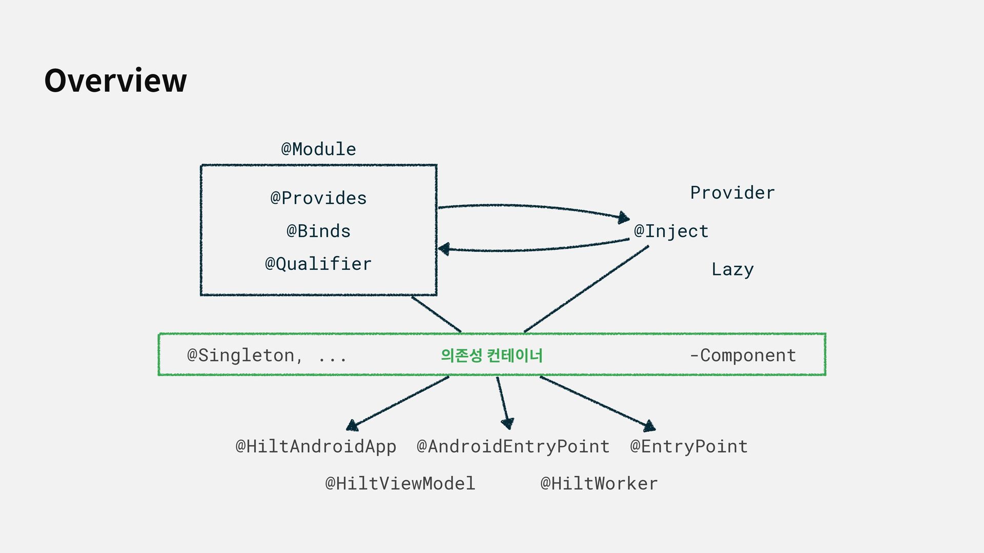 Bar } = @HiltAndroidApp class ExampleApplication : Hilt_ExampleApplication() { @Inject lateinit var bar: Bar } ߄٘ܳ ߸ജೞৈ, ࠗݽ ېझܳ ߸҃ೠ. (Gradle Plugin)
