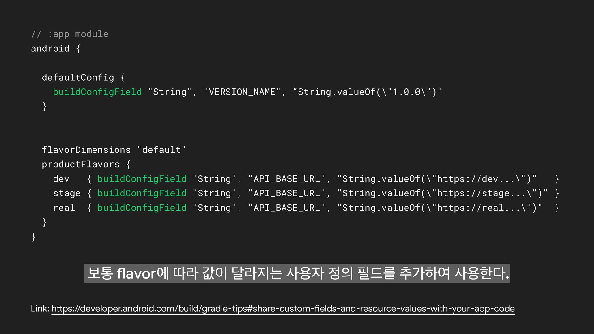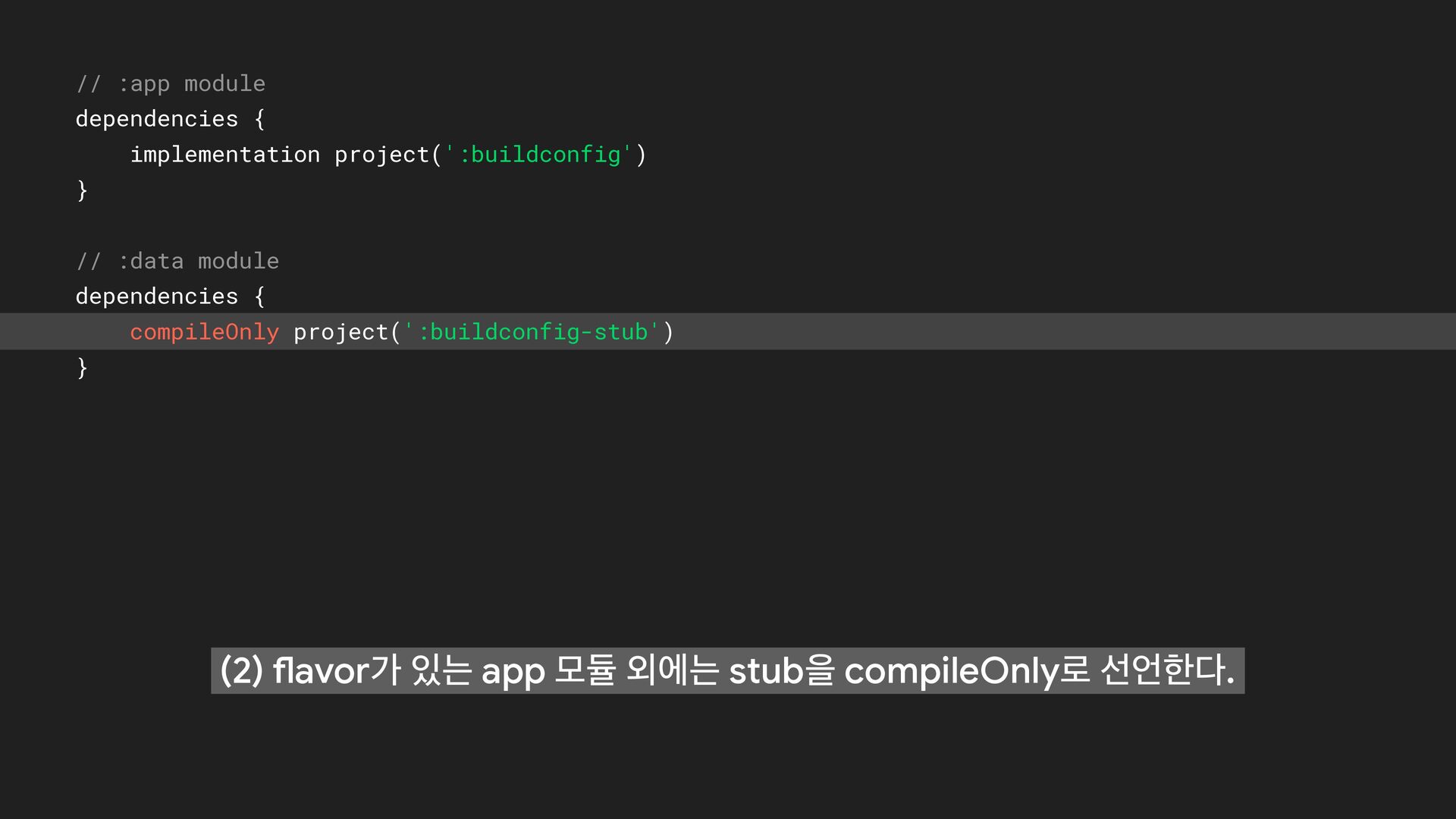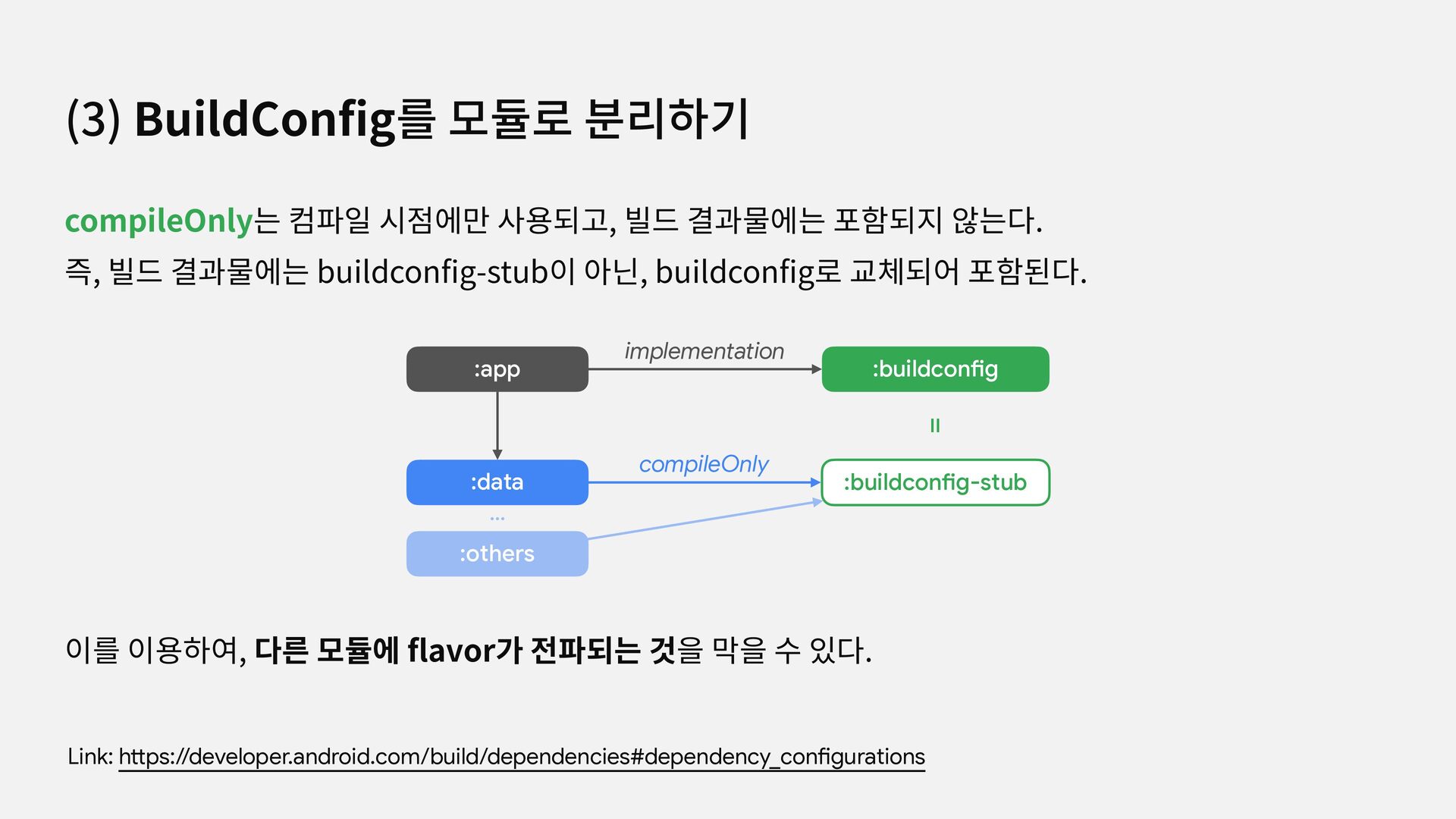 , flavor . :data :app :buildcon fi g :buildcon fi g-stub compileOnly implementation = :others … Link: h tt ps://developer.android.com/build/dependencies#dependency_con fi gurations