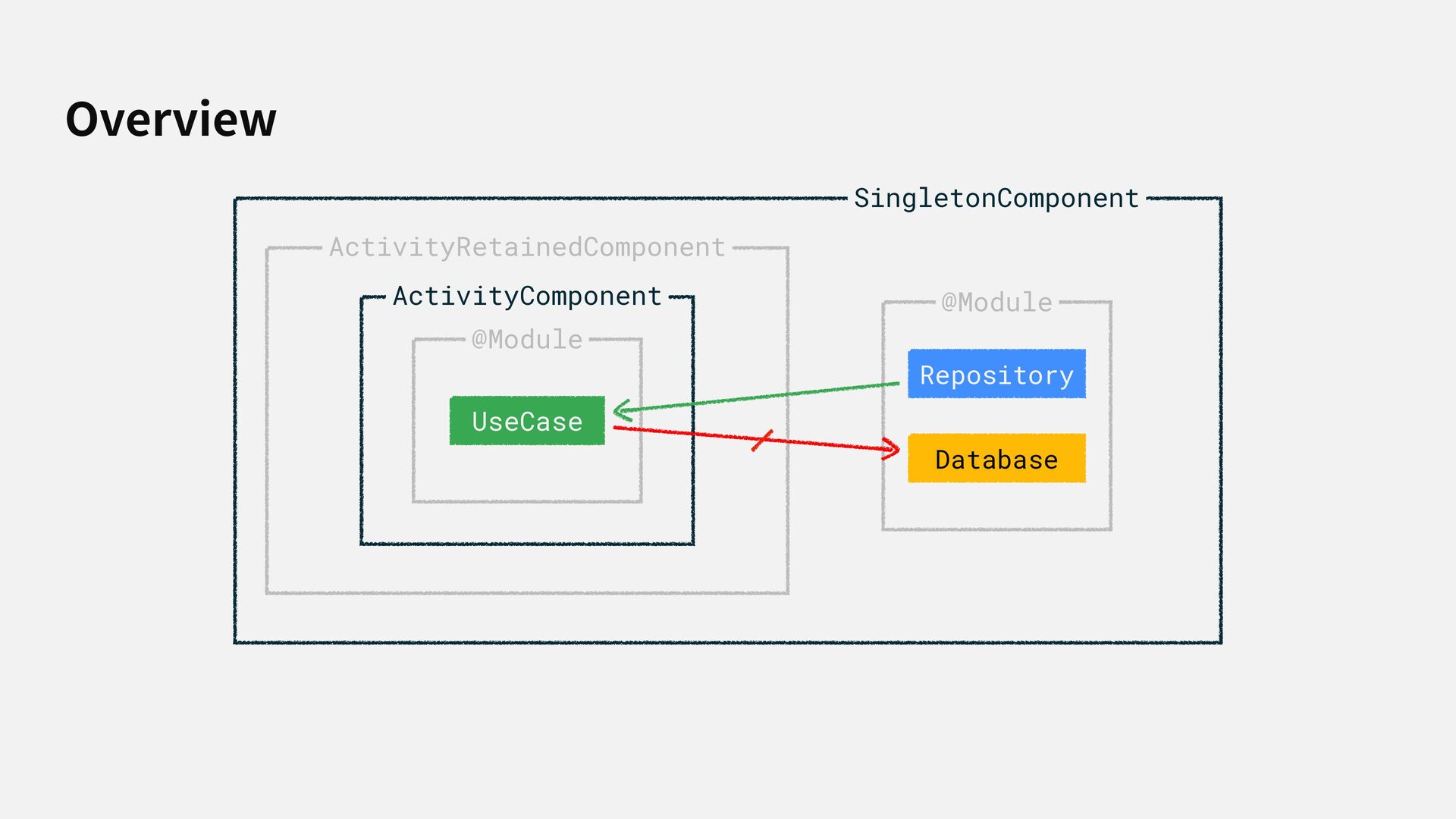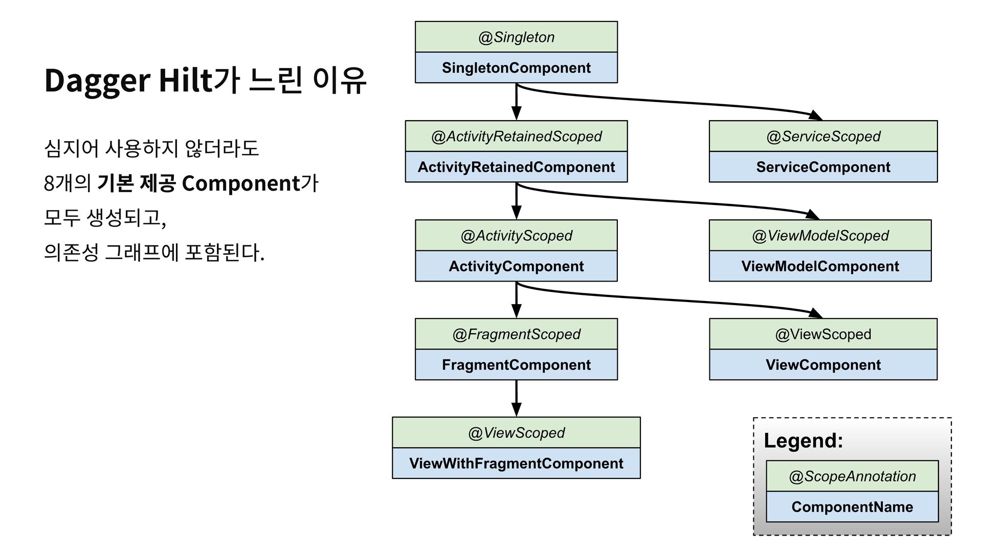 Hilt public final class ExampleApplication_HiltComponents { @Component(modules = { ActivityRetainedCBuilderModule.class, ... }) @Singleton public abstract static class SingletonC implements SingletonComponent { } ... } // -------------------------------------------------------------------------------- // Generated by Dagger public final class DaggerExampleApplication_HiltComponents_SingletonC { // ઓࢿ ஶపց private static final class SingletonCImpl extends ExampleApplication_HiltComponents.SingletonC { public void injectExampleApplication(ExampleApplication exampleApplication) {} } ... } @HiltAndroidApp - ઓࢿ ஶపցܳ ࢤࢿೠ.