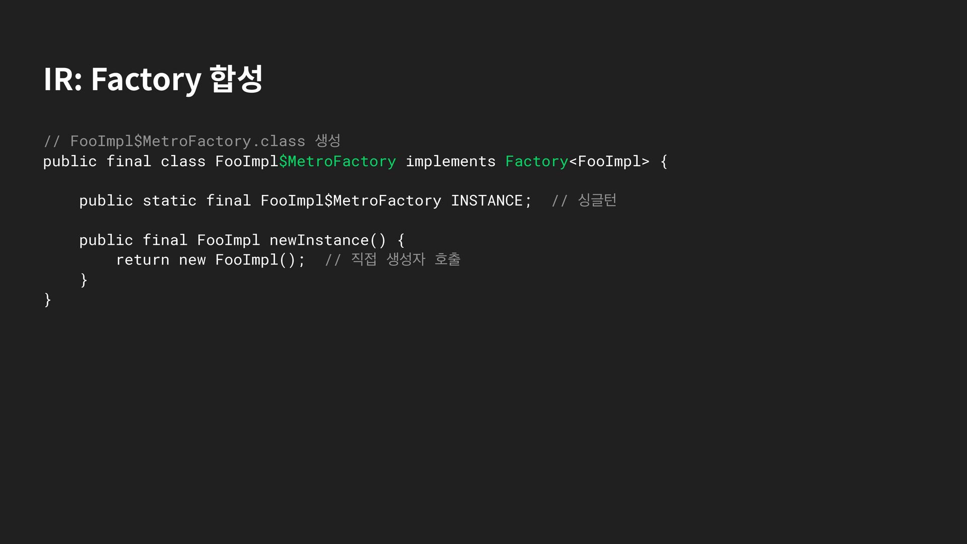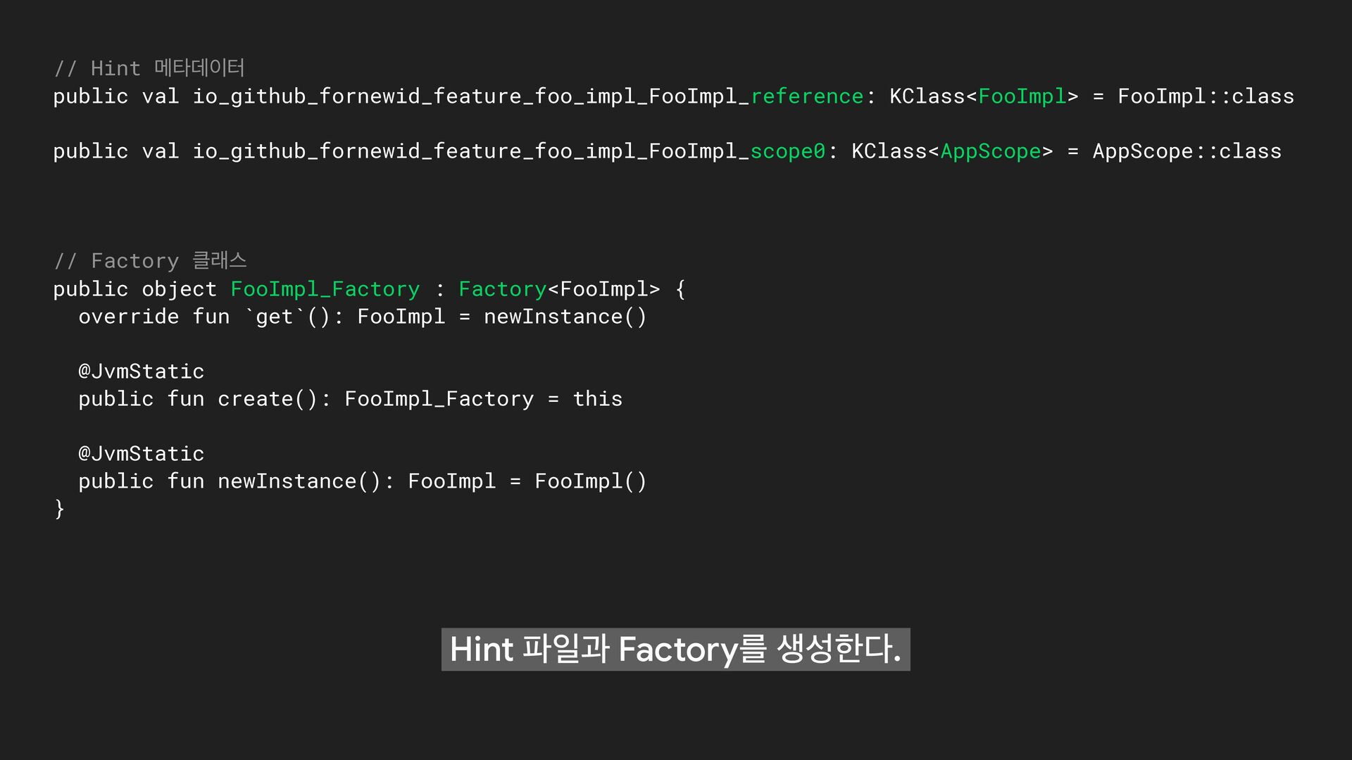 val io_github_fornewid_feature_foo_impl_FooImpl_scope0: KClass<AppScope> = AppScope::class // Factory ېझ public object FooImpl_Factory : Factory<FooImpl> { override fun `get`(): FooImpl = newInstance() @JvmStatic public fun create(): FooImpl_Factory = this @JvmStatic public fun newInstance(): FooImpl = FooImpl() } Hint ੌҗ Factoryܳ ࢤࢿೠ.