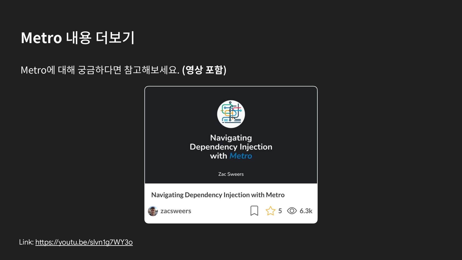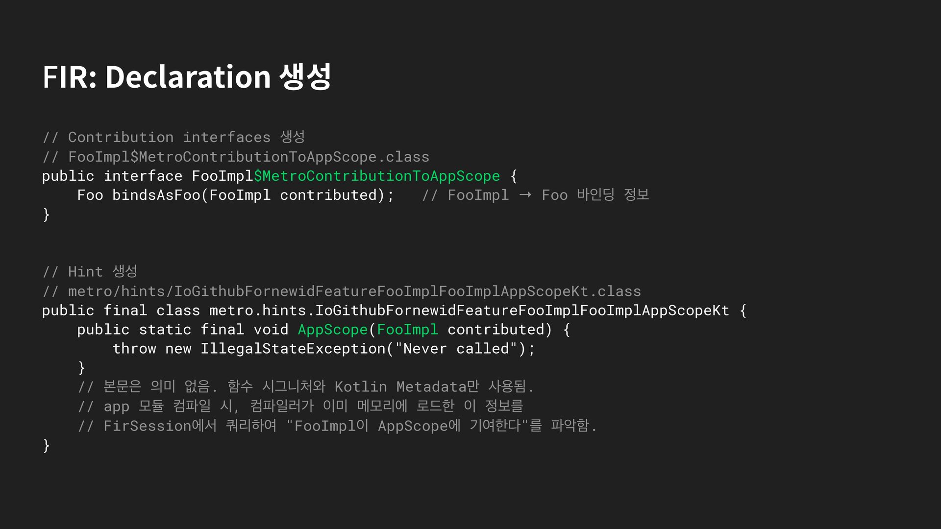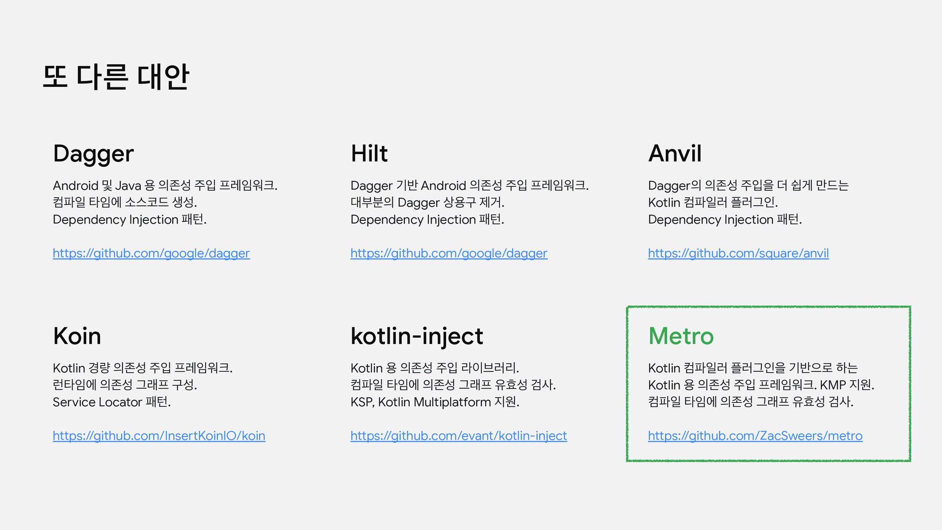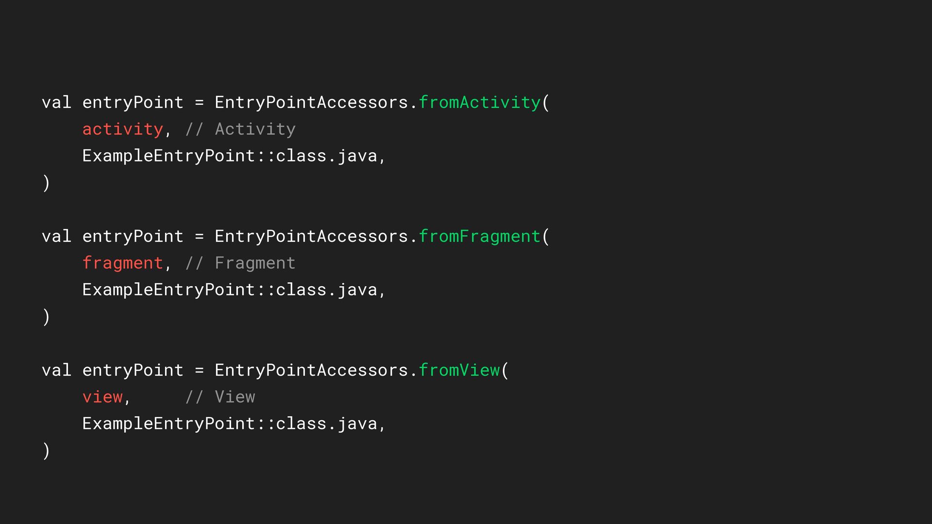 Bar } → Hilt_HomeActivity.java ࢤࢿ → HomeActivity_GeneratedInjector.java ࢤࢿ → HomeActivity_MembersInjector.java ࢤࢿ // -------------------------------------------------------------------------------- class HomeActivity : ComponentActivity() { private val appGraph by lazy { appGraph<AppGraph>() } override fun onCreate(savedInstanceState: Bundle?) { super.onCreate(savedInstanceState) val bar: Bar = appGraph.bar } } inline fun <reified T> Context.appGraph(): T { return (applicationContext as ExampleApplication).appGraph as T } Metroח ٘ ੑ হҊ, ઓࢿ Ӓېী Ӕ೧ঠ ೠ.