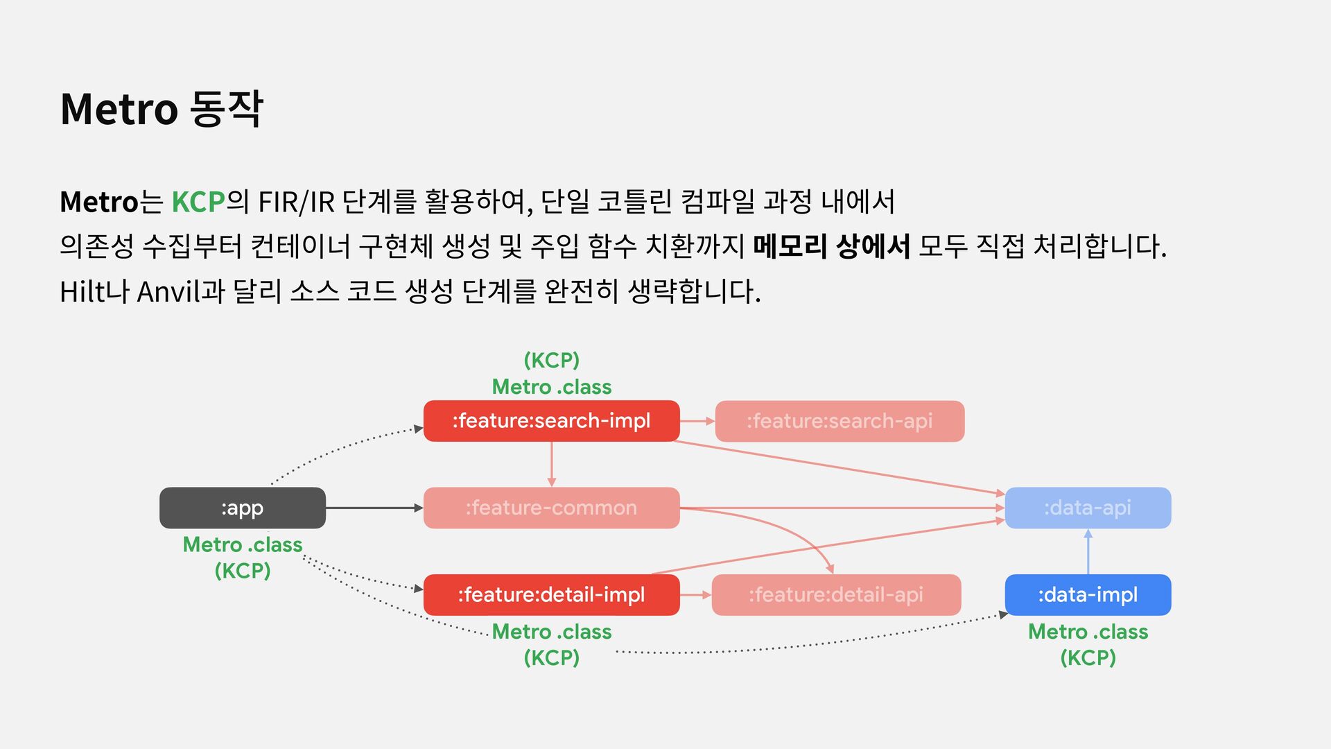 :app :feature:search-impl :feature-common :feature:detail-impl :data-api :feature:search-api :feature:detail-api Metro .class (KCP) Metro .class (KCP) (KCP) Metro .class Metro .class (KCP)