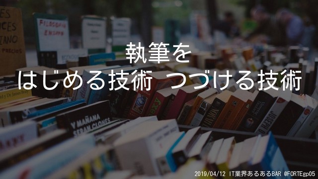 執筆を はじめる技術 つづける技術 2019/04/12 IT業界あるあるBAR @FORTEgp05