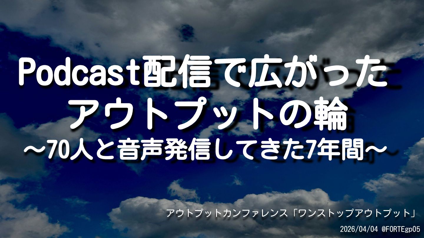 Podcast配信で広がった アウトプットの輪 ~70人と音声発信してきた7年間~ 2026/04/04 @FORTEgp05 アウトプットカンファレンス「ワンストップアウトプット」