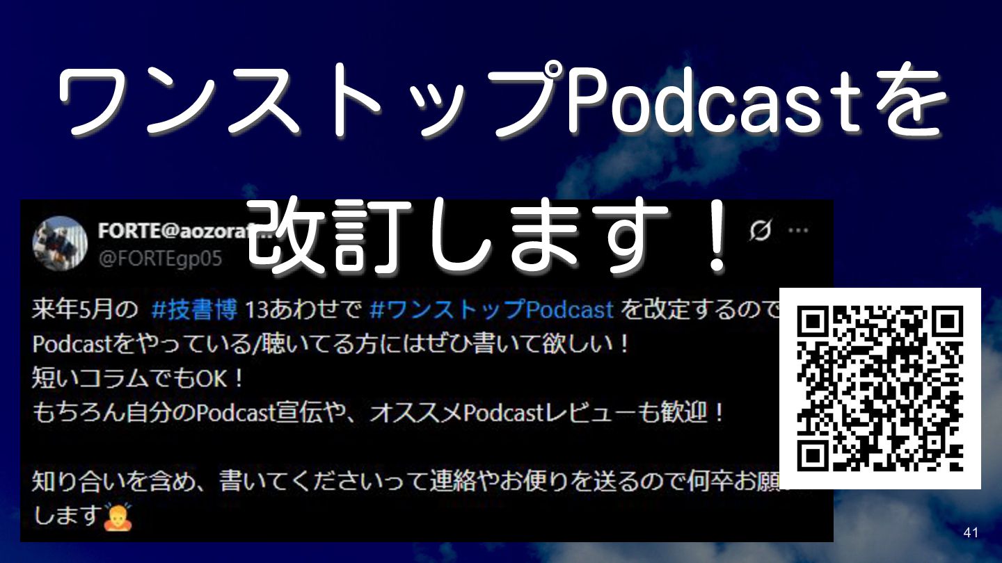 41 ワンストップPodcastを 改訂します!