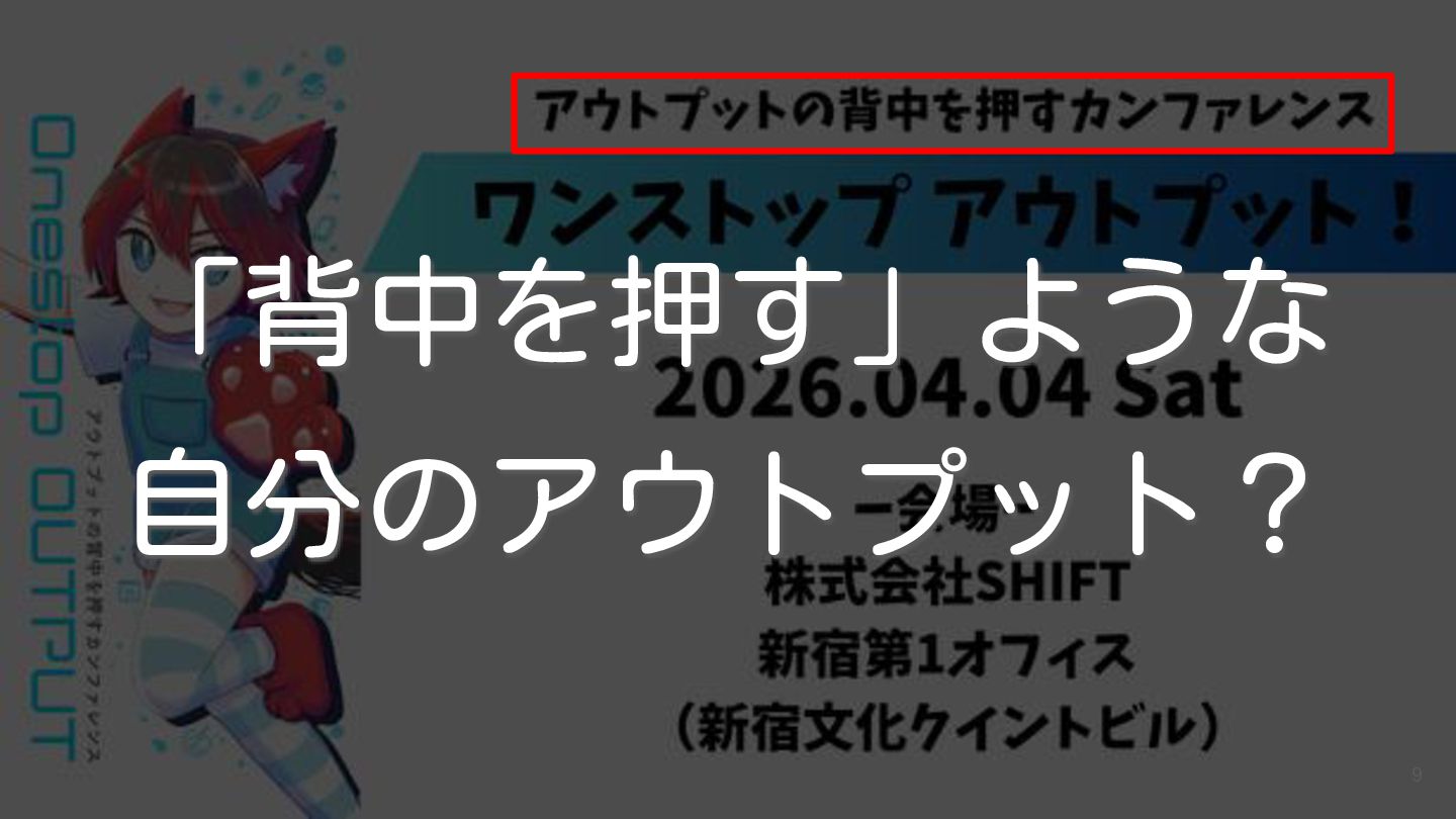 2026/04/04(土)に開催された『アウトプットの背中を押すカンファレンス「ワンストップ アウトプット!」』で登壇した際の資料です!