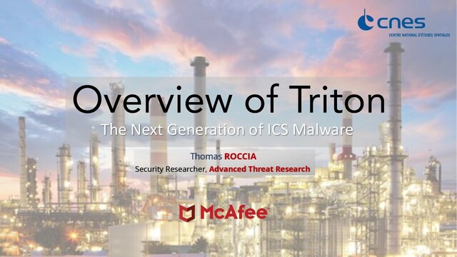 Thomas ROCCIA Security Researcher, Advanced Threat Research @fr0gger_ https://securingtomorrow.mcafee.com/author/thomas-roccia/ http://troccia.tdgt.org Disclaimer: all the research presented are based on the public and internal information collected by the actors who were engaged during the investigation. A combined investigation and collaboration within the following actors: The FBI, NCCIC, Schneider Electric, McAfee, FireEye, DragosInc, Nozomi, Cyberx…