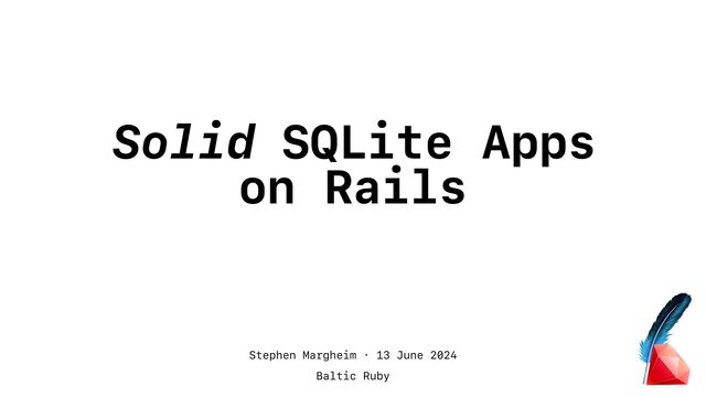 Join me to learn how to pair the enhancements to Rails’ SQLite adapter with the suite of Solid libraries to create resilient, high-performance production apps.