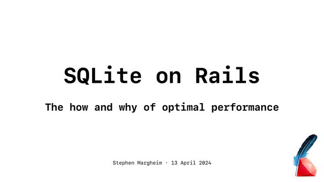 Learn how to run a Rails application in production with SQLite, covering performance, resilience, enhancements, and deployment, with a particular deep-dive into performance.