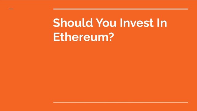 Should You Invest In Ethereum?