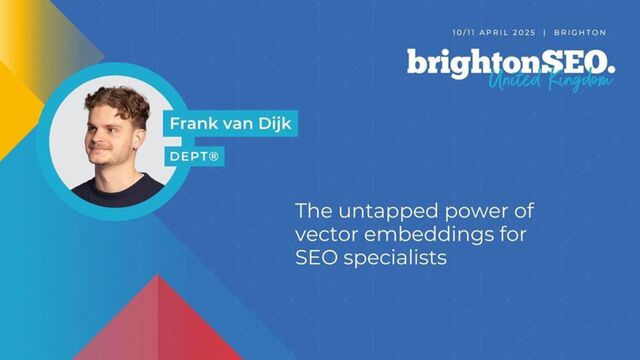 On brightonSEO, Frank tells how to work with vector embeddings as an SEO specialist. He tells you what they are, how you can use them to automate your work and lays out some cases with vector databases.