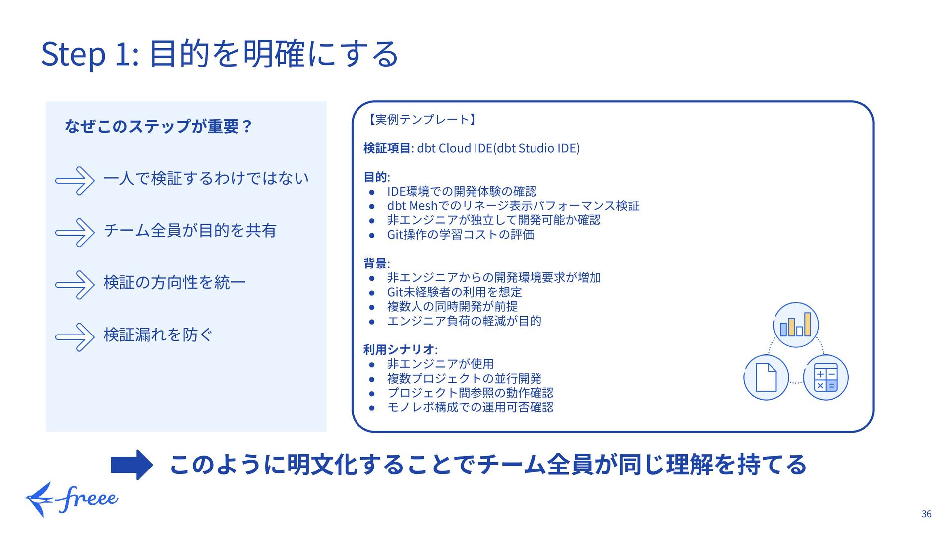 24. 36 Step 1: ⽬的を明確にする 【実例テンプレート】 検証項⽬: dbt Cloud IDE(dbt Studio