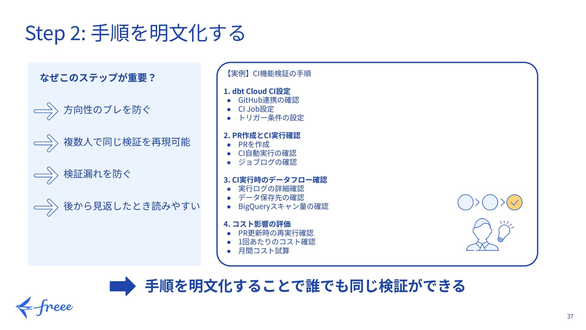 25. 37 Step 2: ⼿順を明⽂化する 【実例】CI機能検証の⼿順 1. dbt Cloud CI設定 •