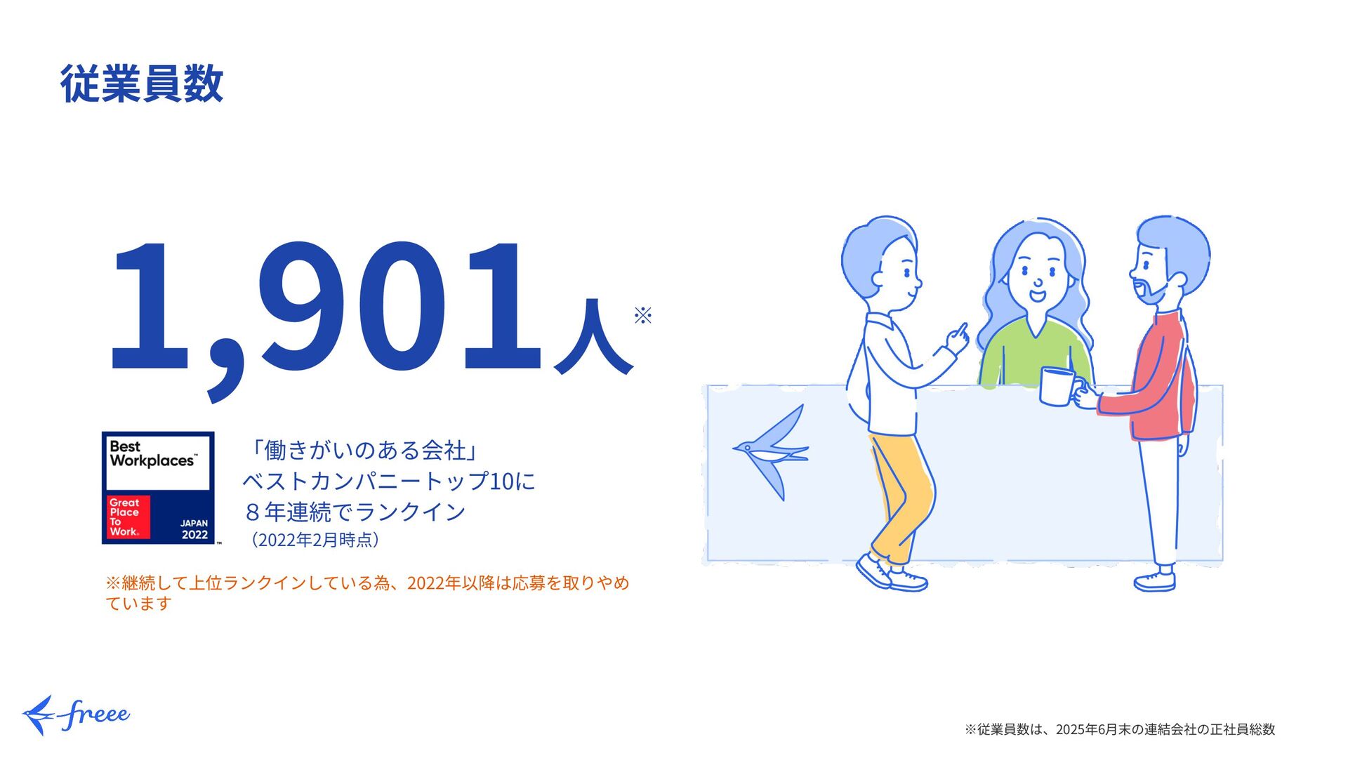 上場市場 東京証券取引所 グロース市場 従業員数 1,901⼈(2025年6⽉末時点の連結の正社員総数) 事業内容 クラウド型バックオフィスサービスの開発‧販売
